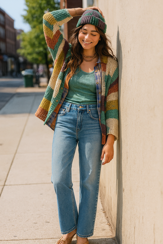 RISEN Mid-Rise Tummy Control Pants Corduroy Relaxed Fit Straight Leg Jeans