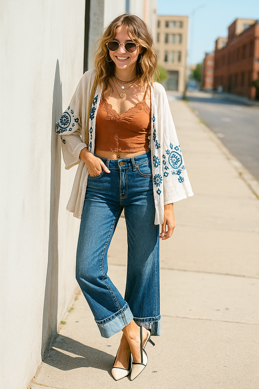 RISEN Mid-Rise Slim Fit Jeans Tacked Ankle Cuff Hem Straight Leg Denim Pants Plus Size Available