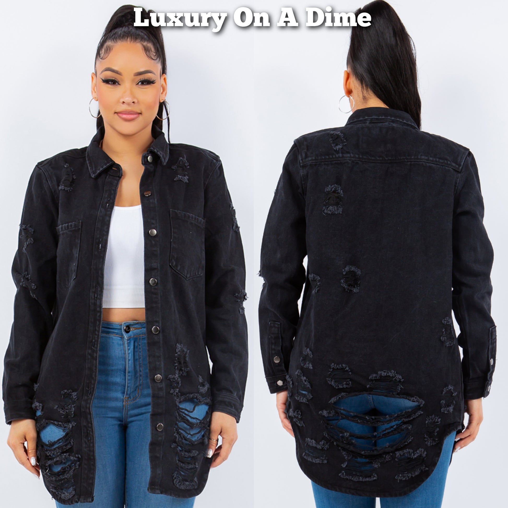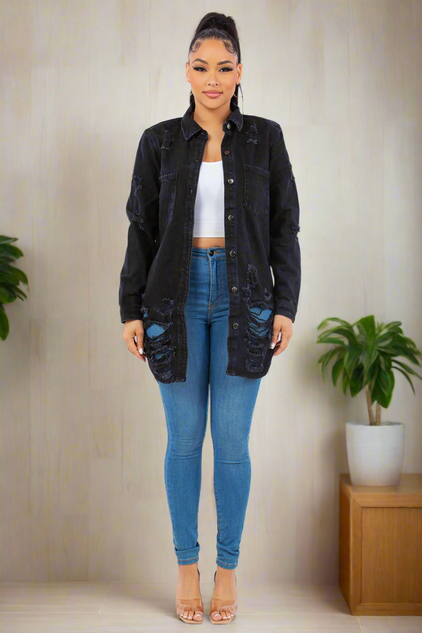 American Bazi Torn Distressed Hole Oversized Shacket Cotton Denim Jean Jacket