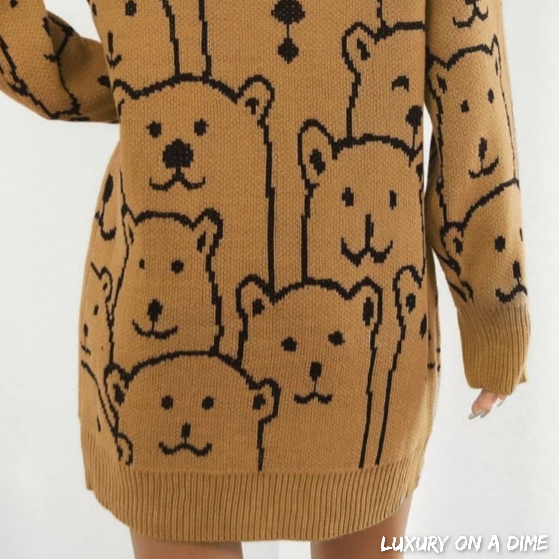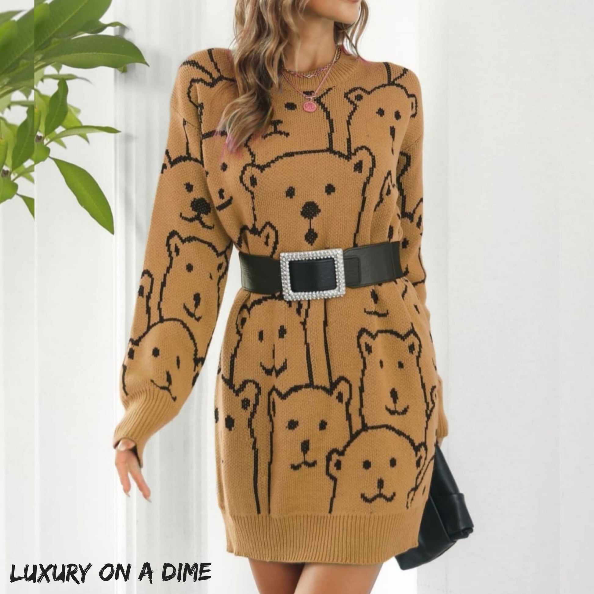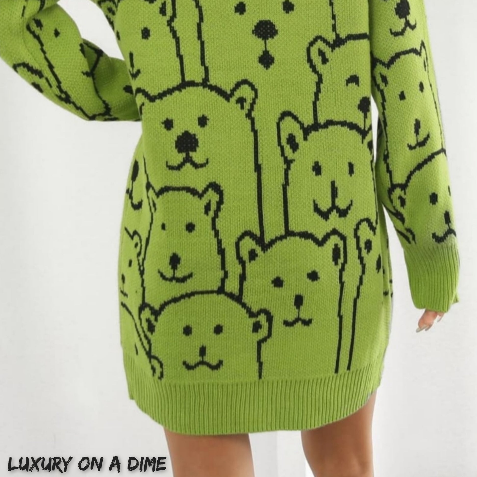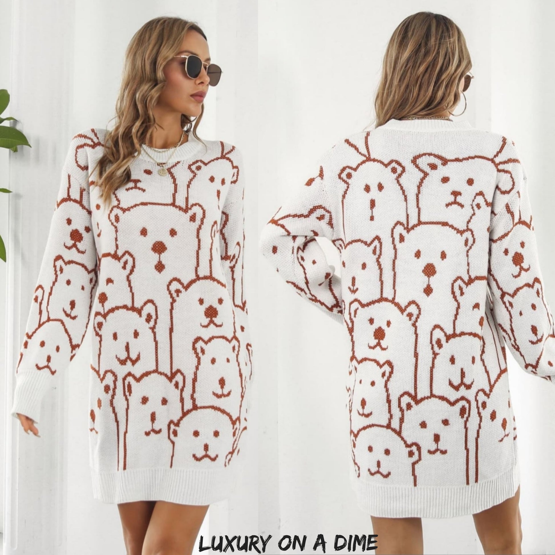 This knit sweater dress will bring a smile to everyone around with a fun polar bear print.
