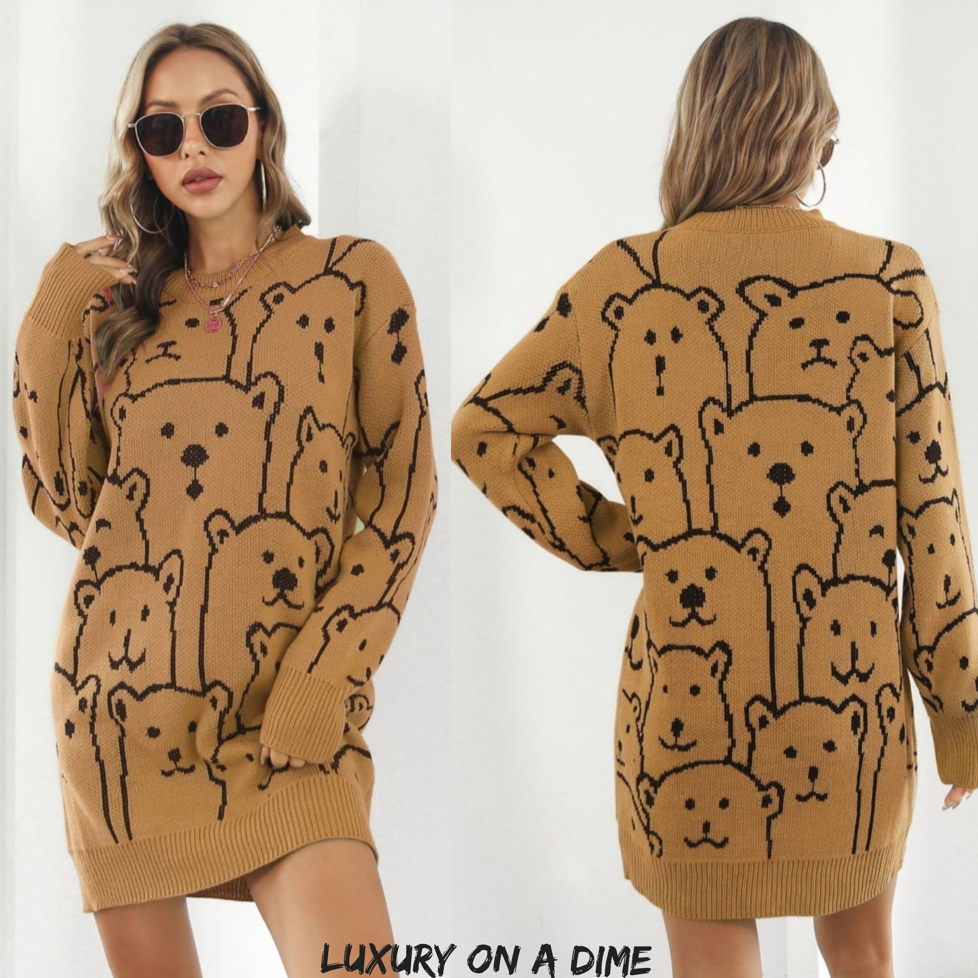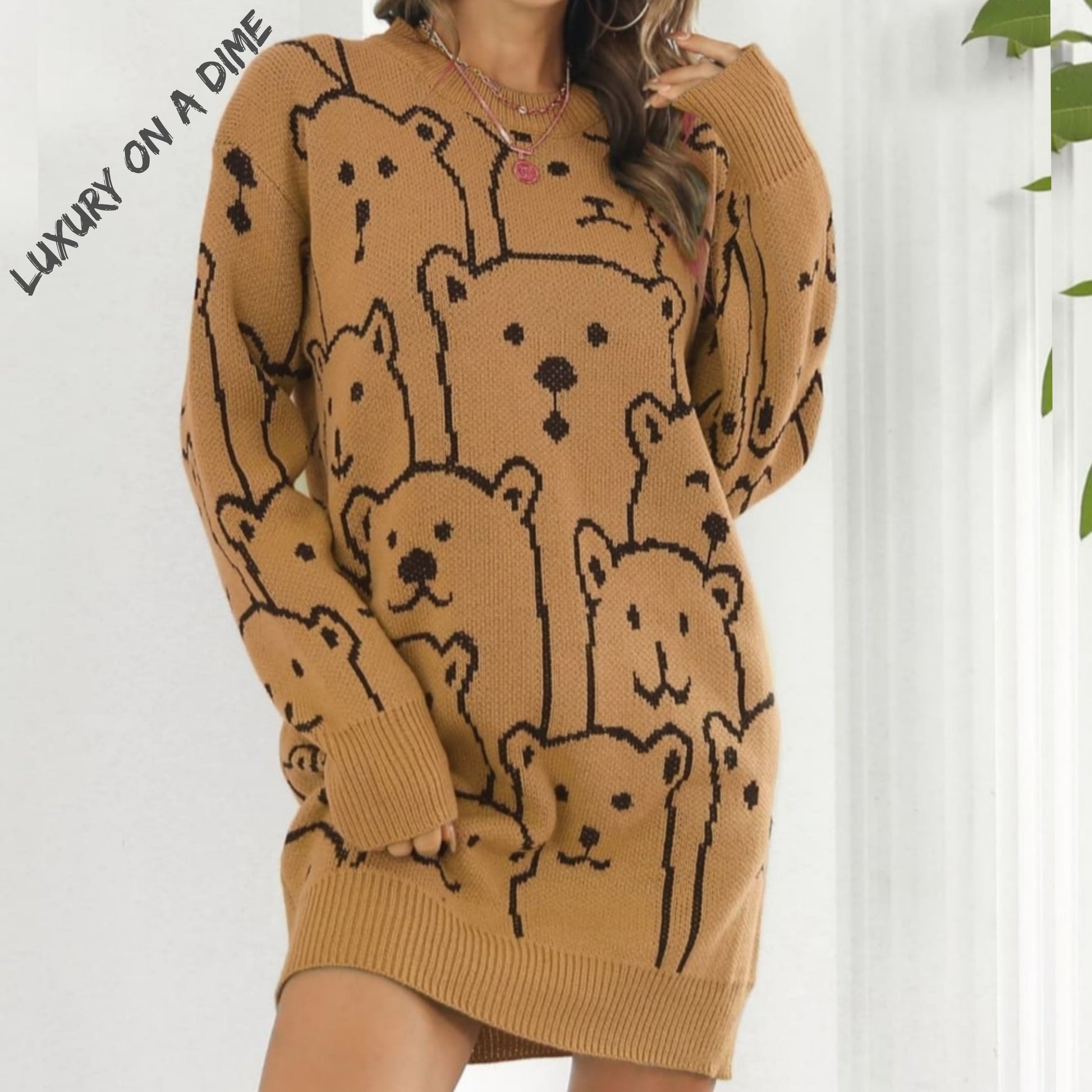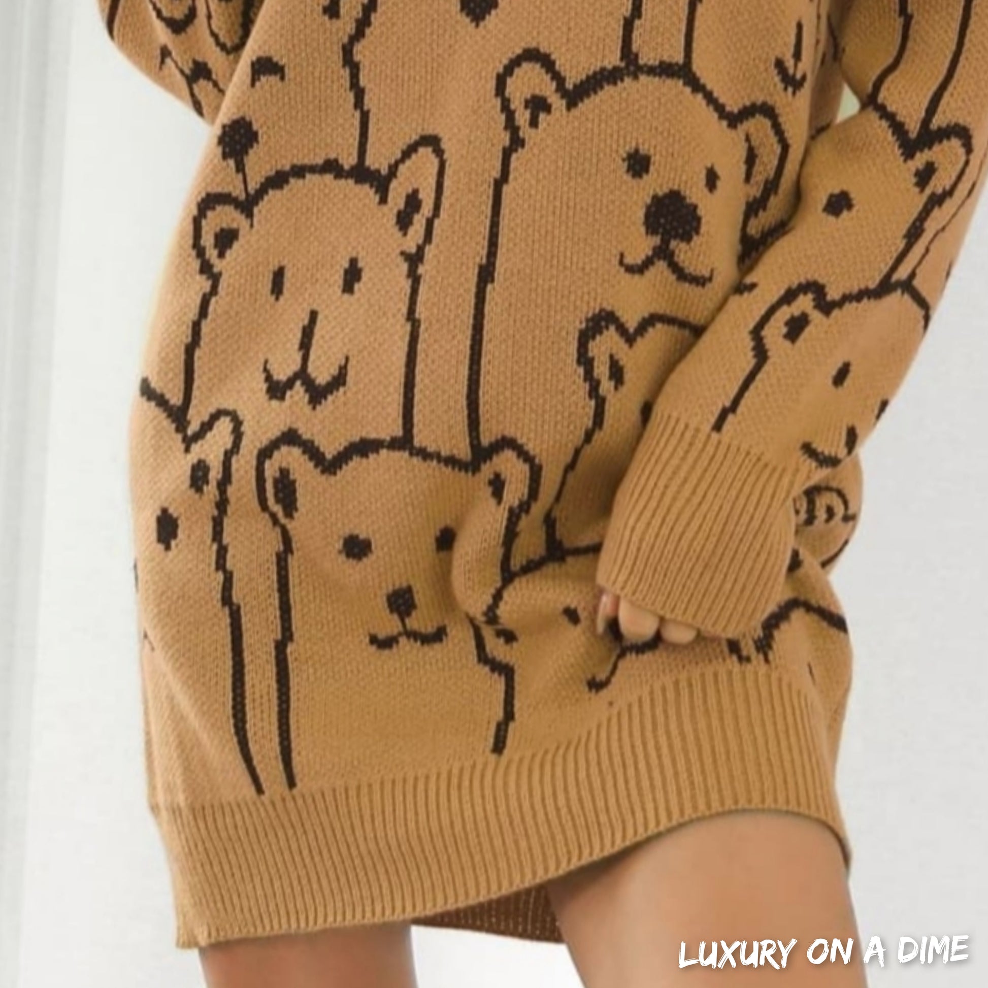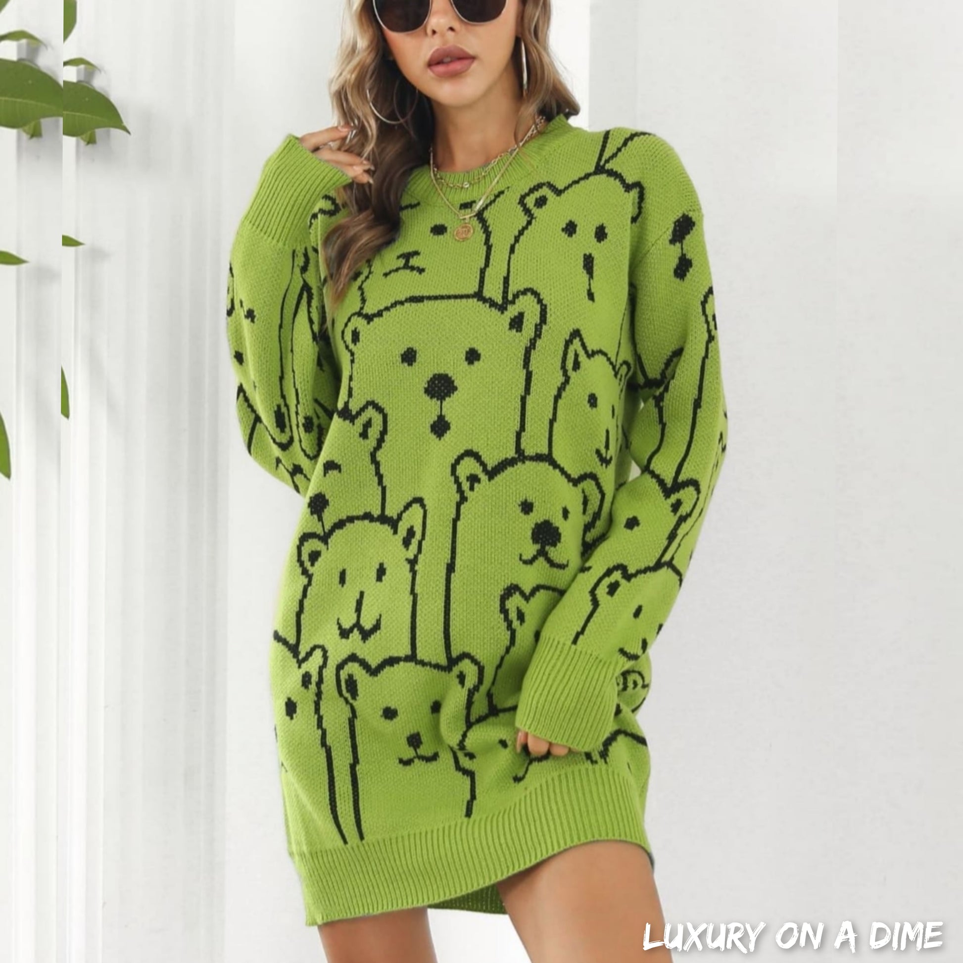 This knit sweater dress will bring a smile to everyone around with a fun polar bear print.