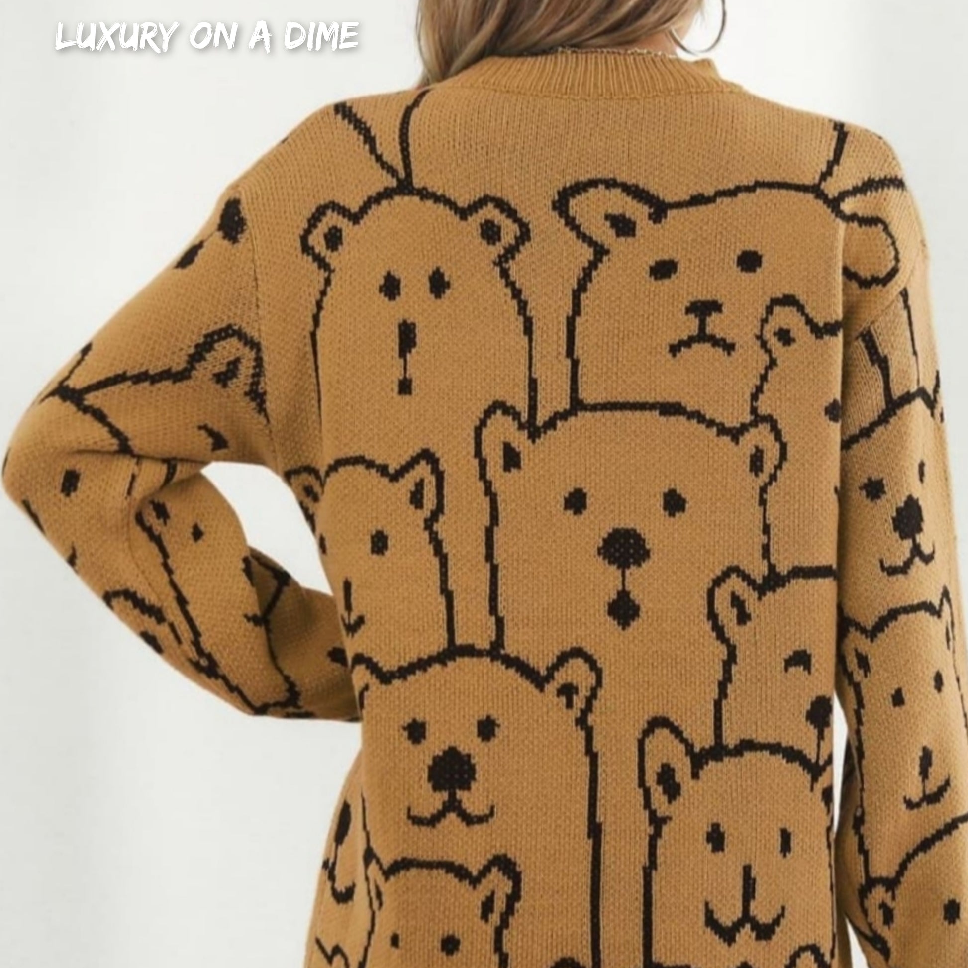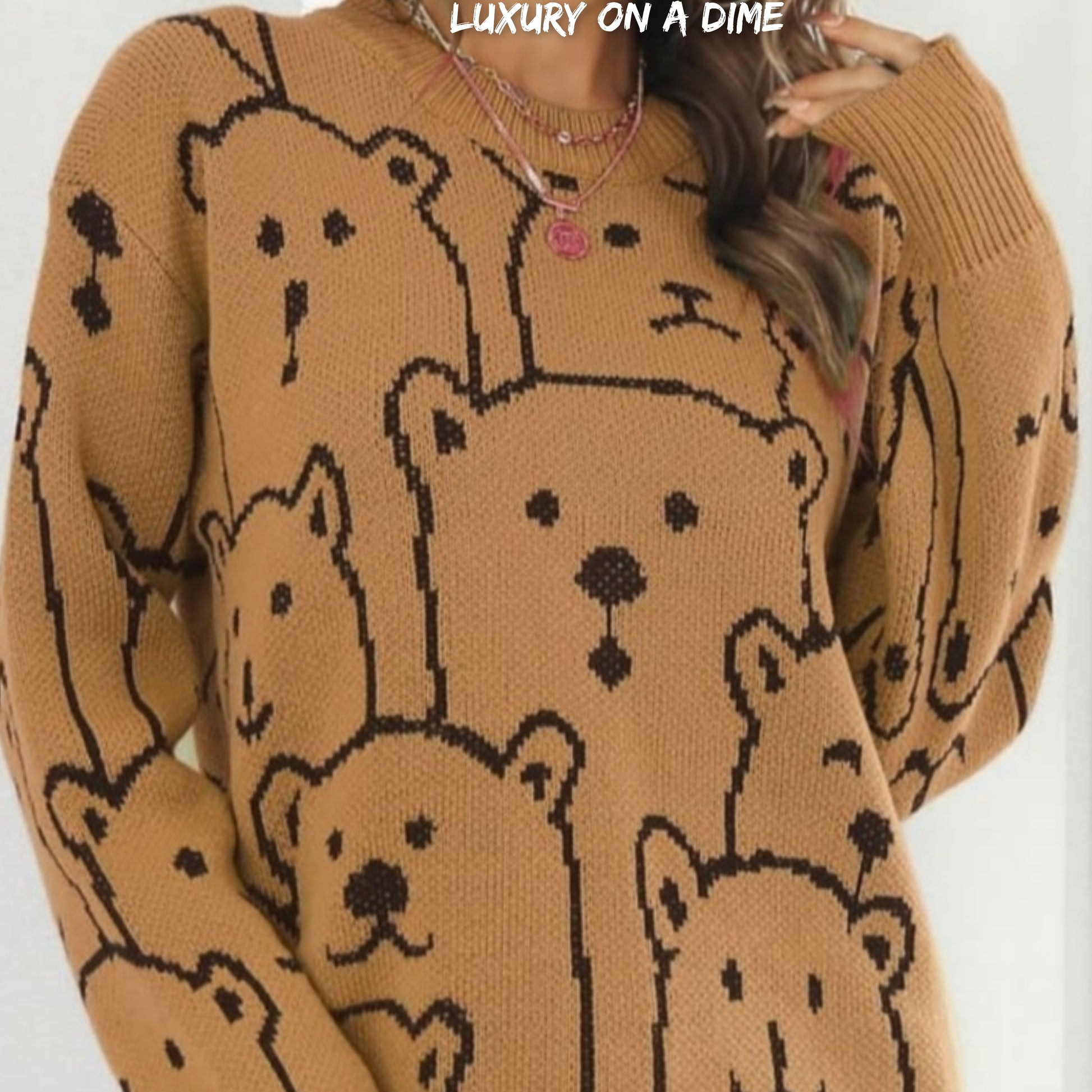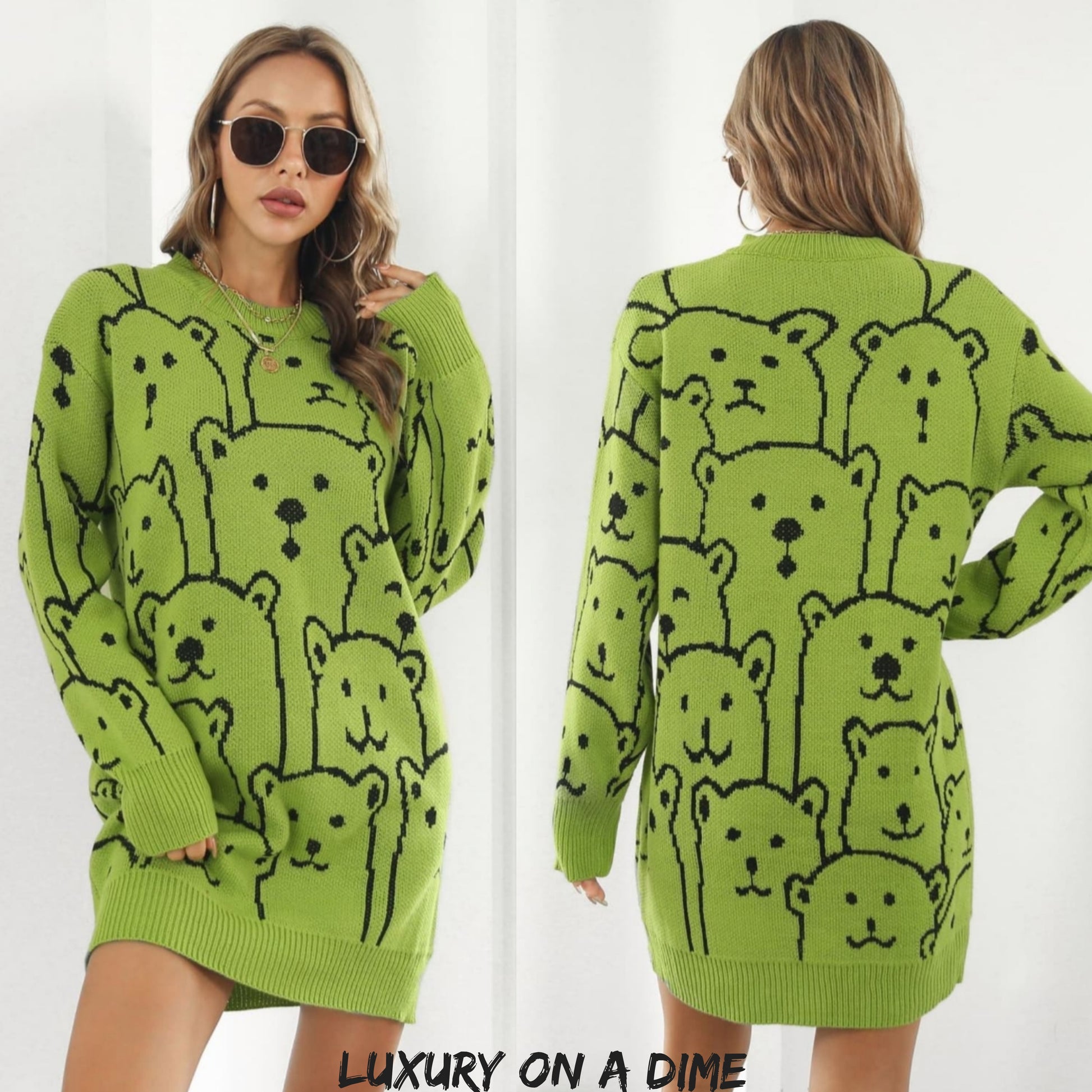 Polar Bear Round Neck Cozy Knit Long Sleeve Oversized Mini Sweater Dress