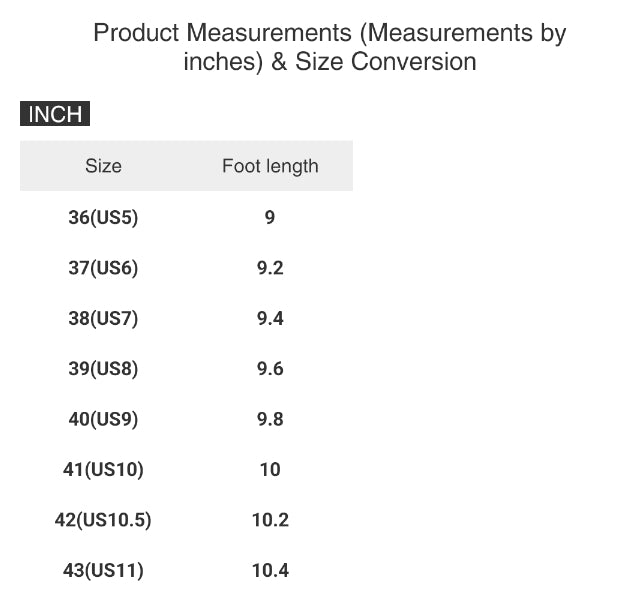 Product Measurements is inches and Size Conversion