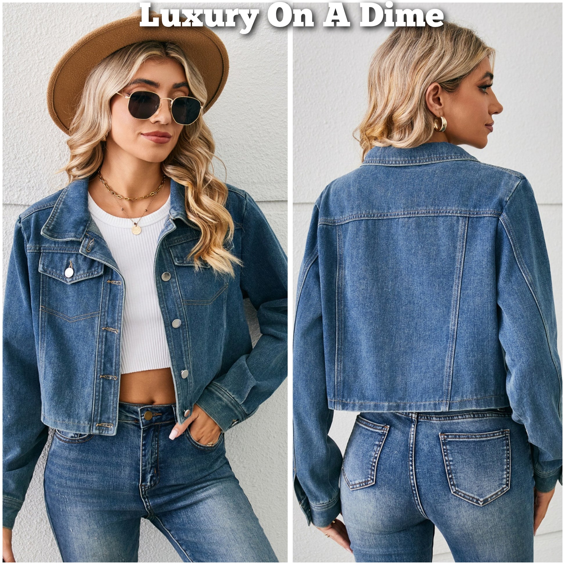 Classic Denim Jacket Blue Jean Long Sleeve Button-up Collar Casual