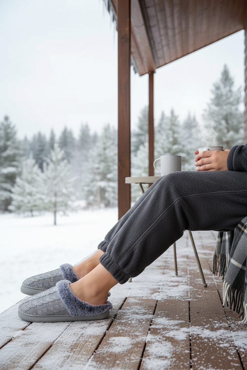 Wrapped in a plush, cable-knit texture and trimmed with ultra-soft faux fur, these cozy indoor slippers bring together warmth, comfort, and a charmingly nostalgic aesthetic. The fluffy lining creates a cloud-soft feel that channels hygge comfort, soft girl coziness, and warm cottagecore charm, while the knit texture adds a touch of handmade, homey appeal reminiscent of classic winter loungewear. Their slip-on design and lightweight build make them effortless for daily wear, blending elements of comfycore, chill aesthetic, pastel home vibes, and dreamy relaxation. Perfect for slow mornings, self-care nights, and relaxed at-home moments, these slippers embody a soothing mix of comfort-first style, fuzzy warmth, and serene simplicity.