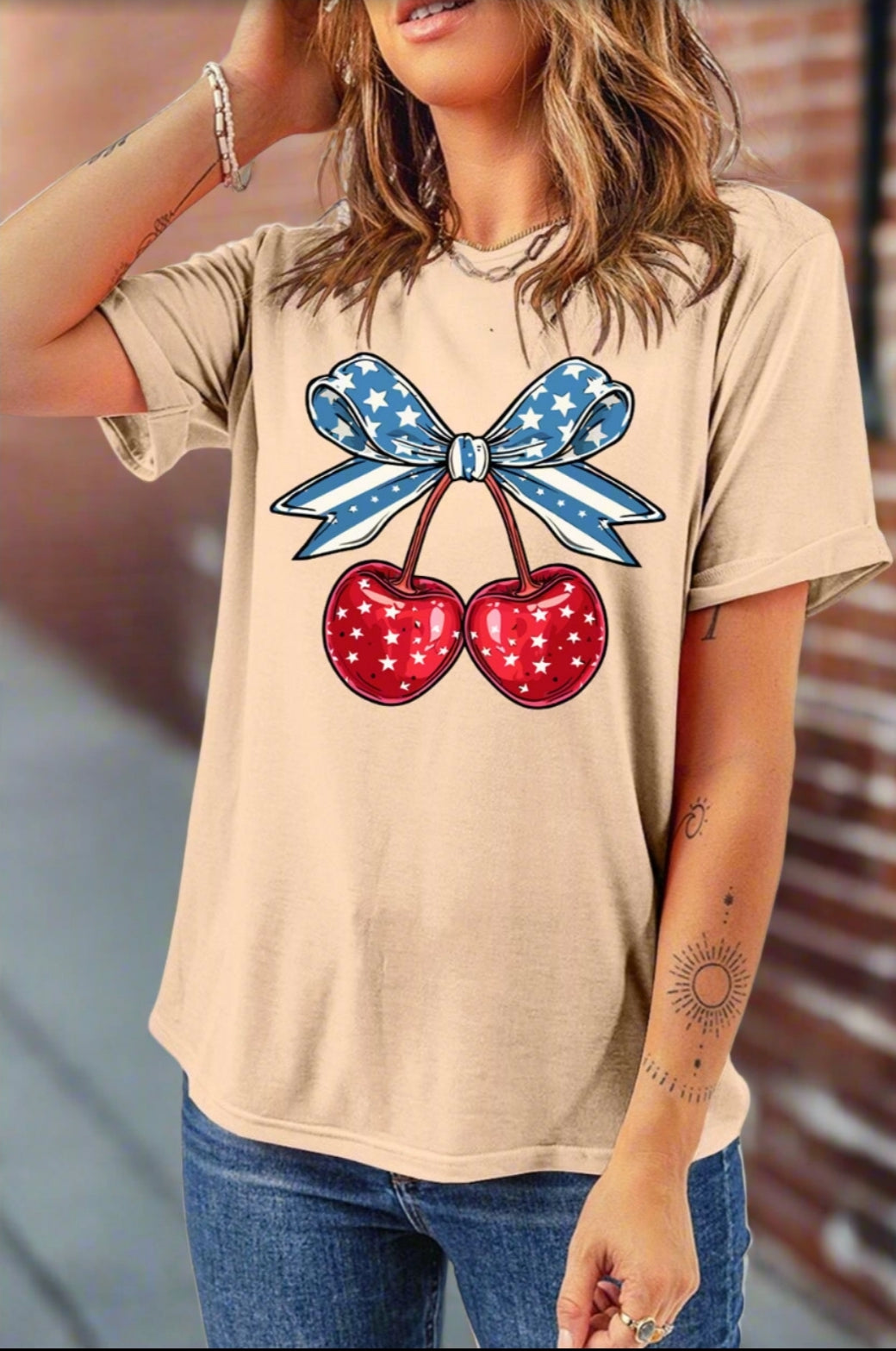 Cherry Bow American Flag Graphic Shirt Americana Patriotic Short Sleeve Top
