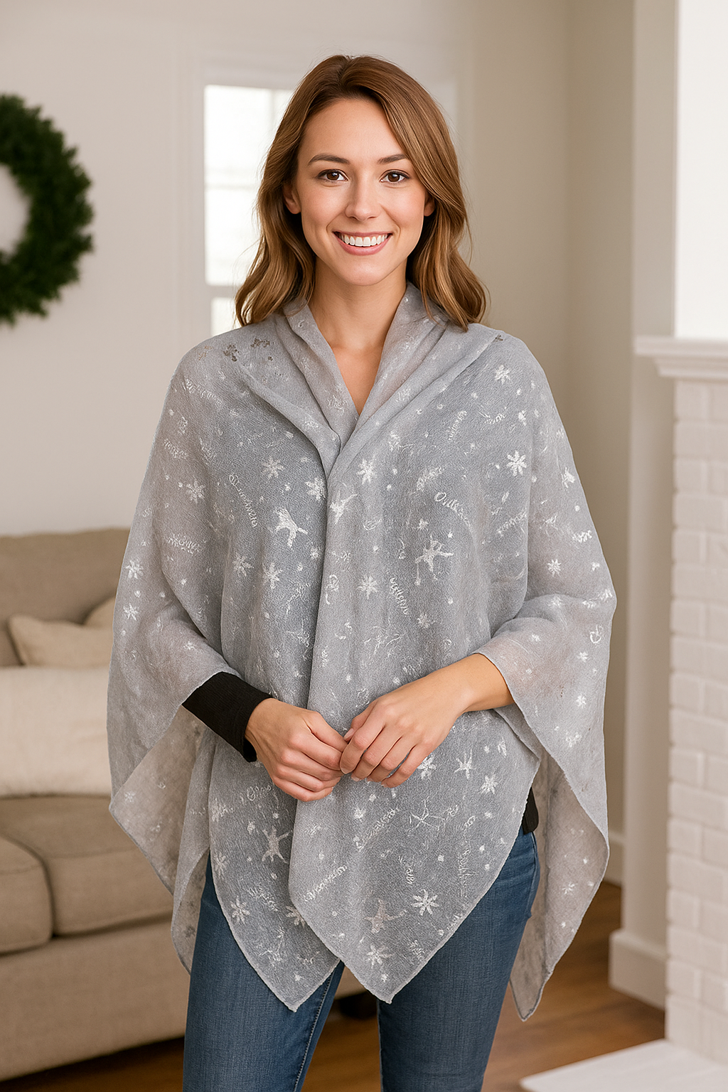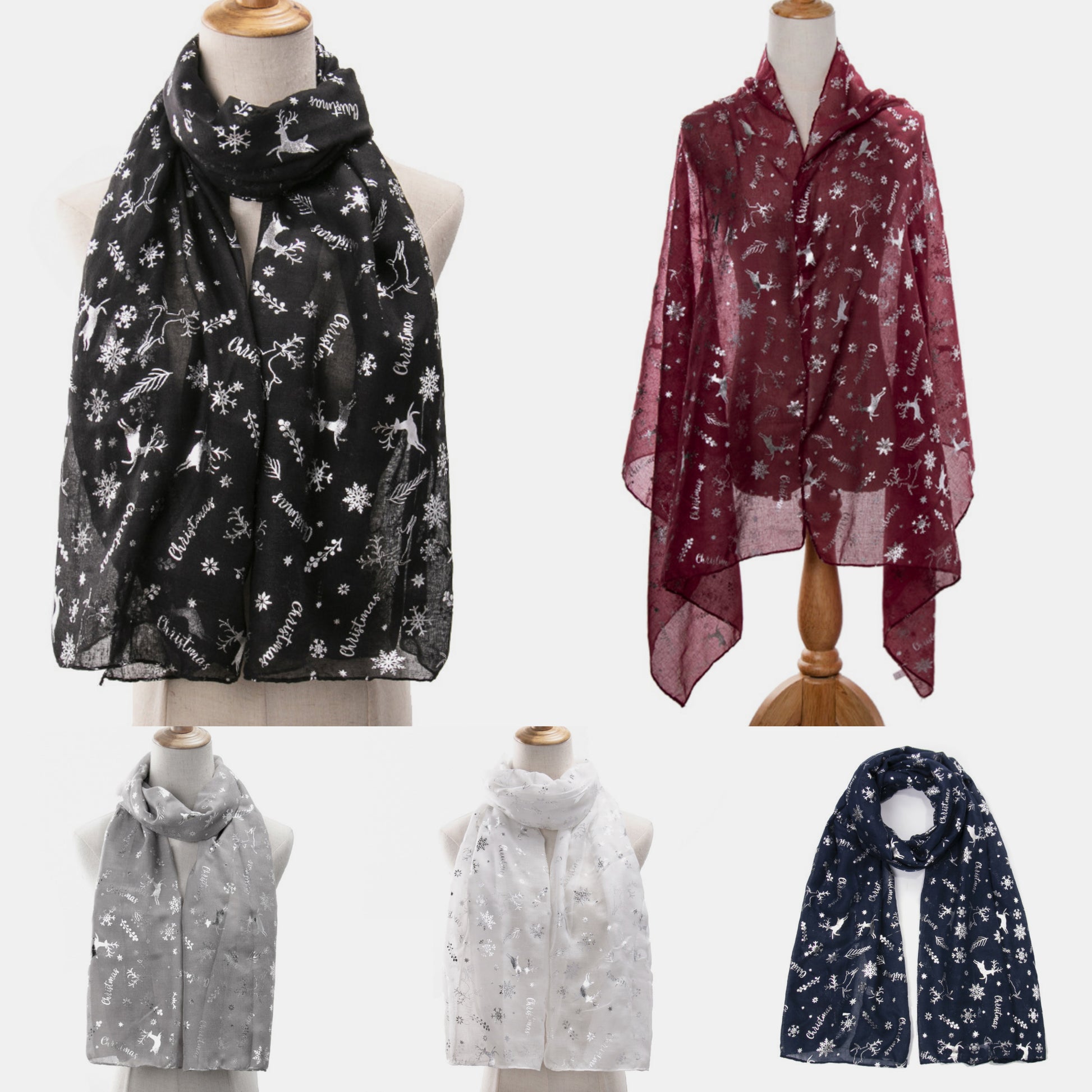 27x70 Metallic Reindeer Scarf Christmas Large Scarf Festive Shawl Wrap Holiday