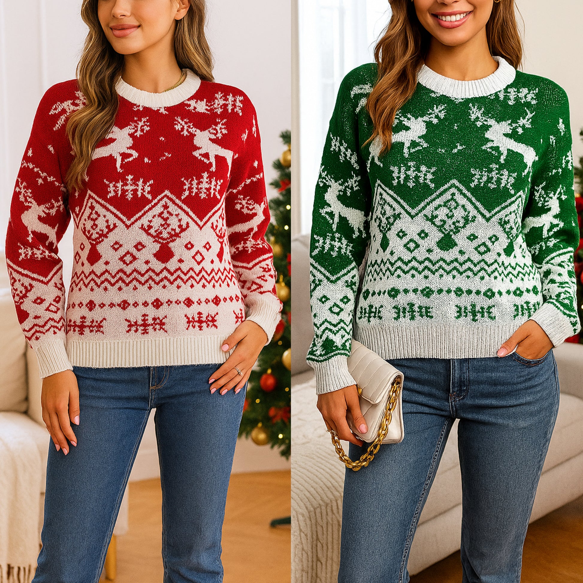 Classic Fair Isle Reindeer Christmas Sweater Top Holiday Long Sleeve Festive Shirt