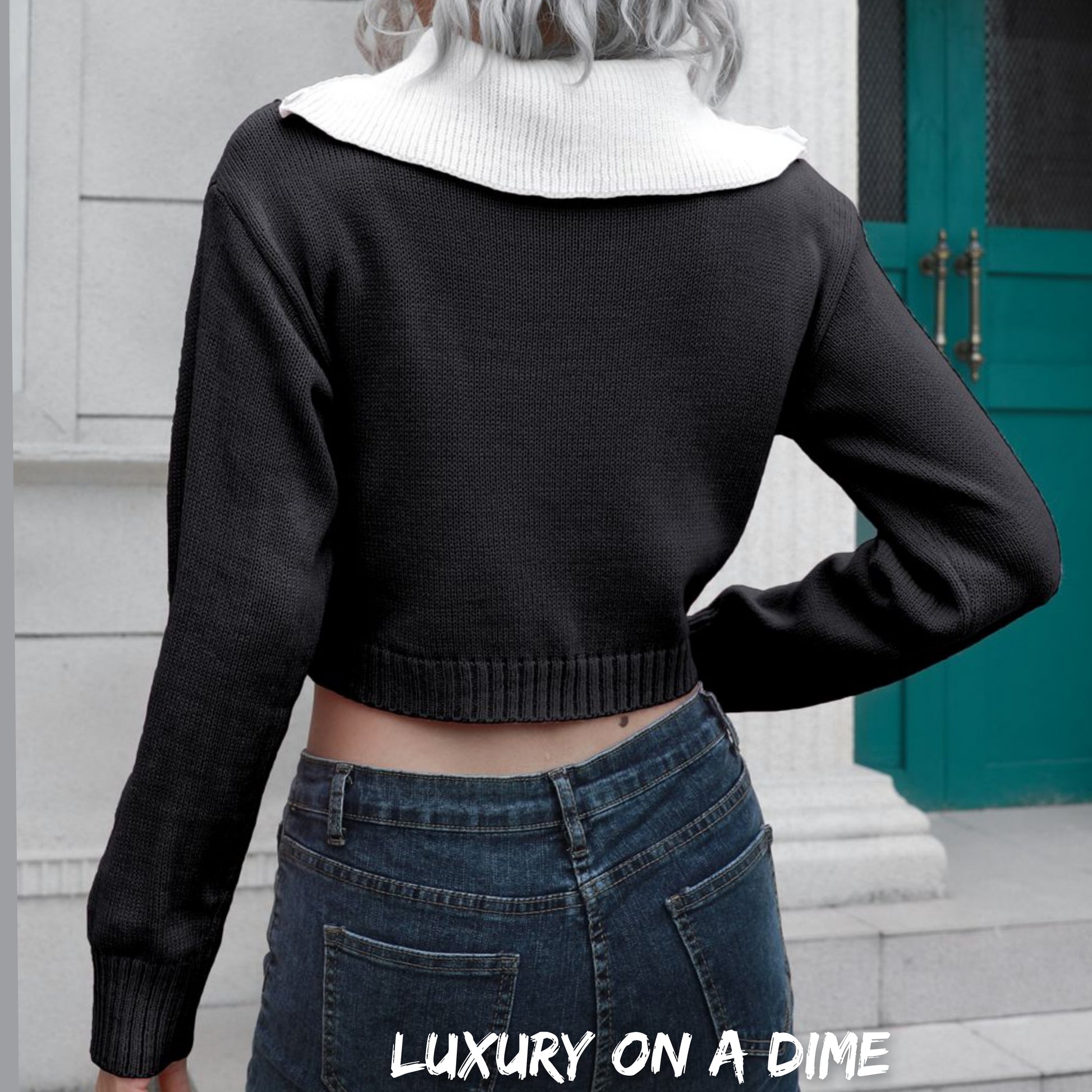 This chic, unique cropped sweater is a upgrade to a timeless wardrobe staple.