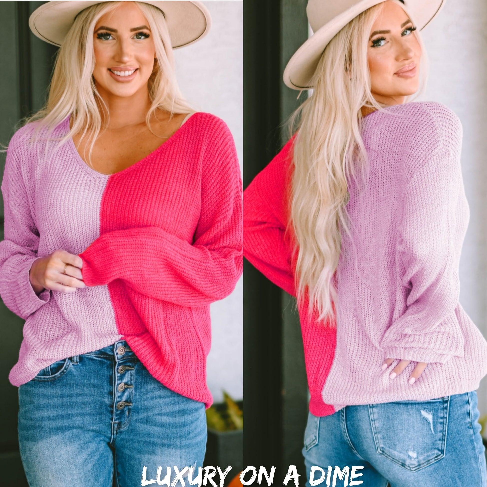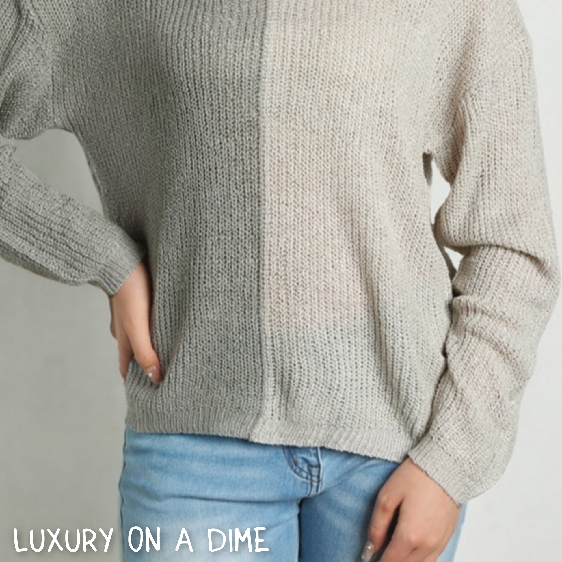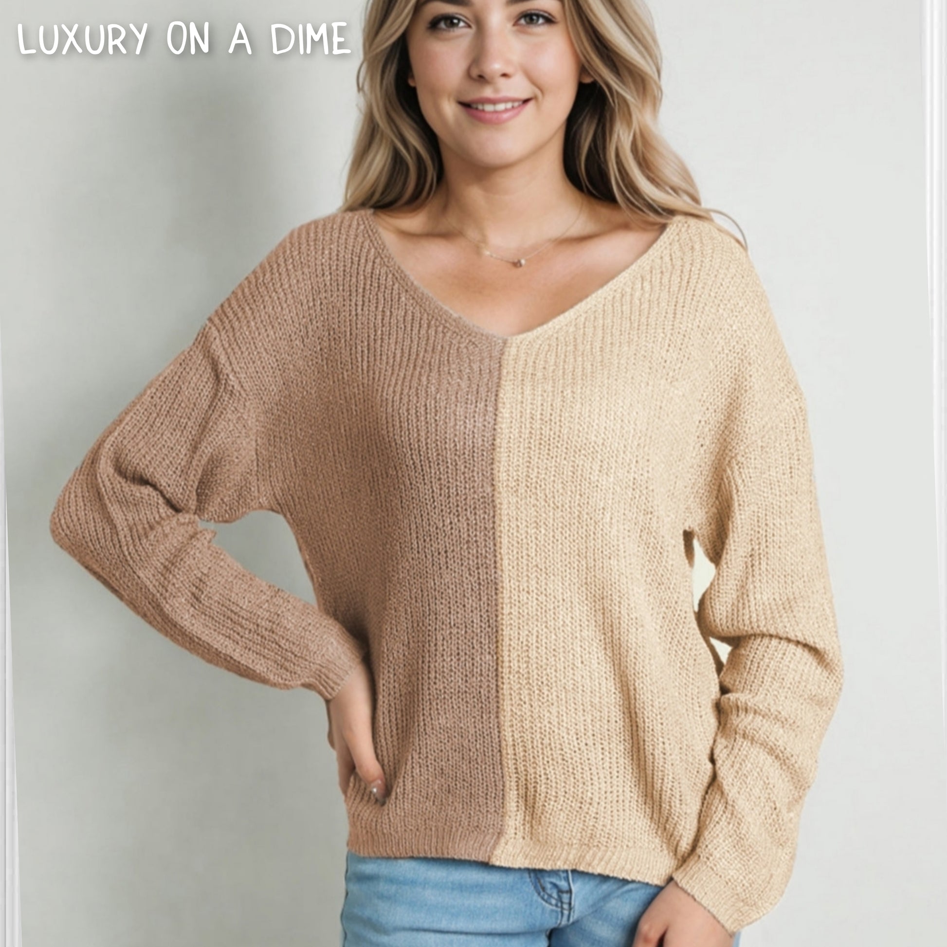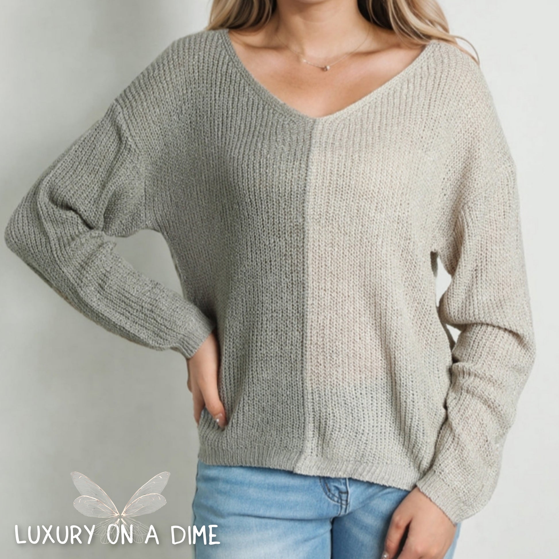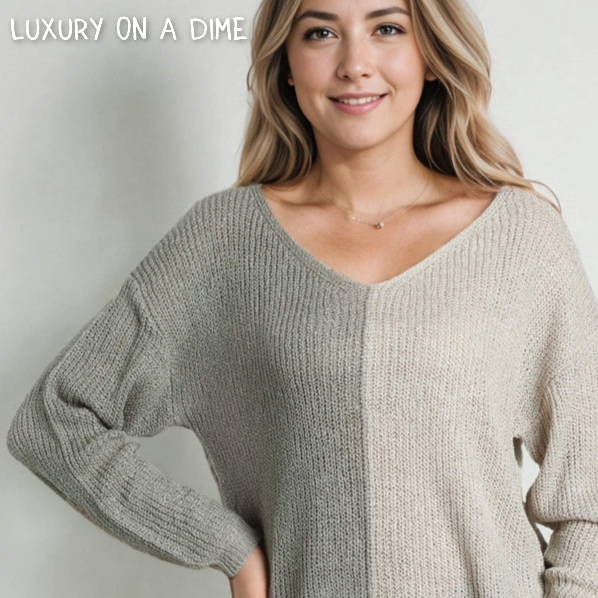 Color Block Contrast V-Neck Lightweight Pullover Knit Sweater