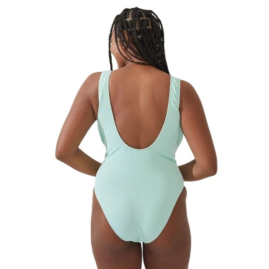 Cotton On Honeydew Melon Crinkle Open Back Cheeky Swimwear One-Piece Swimsuit