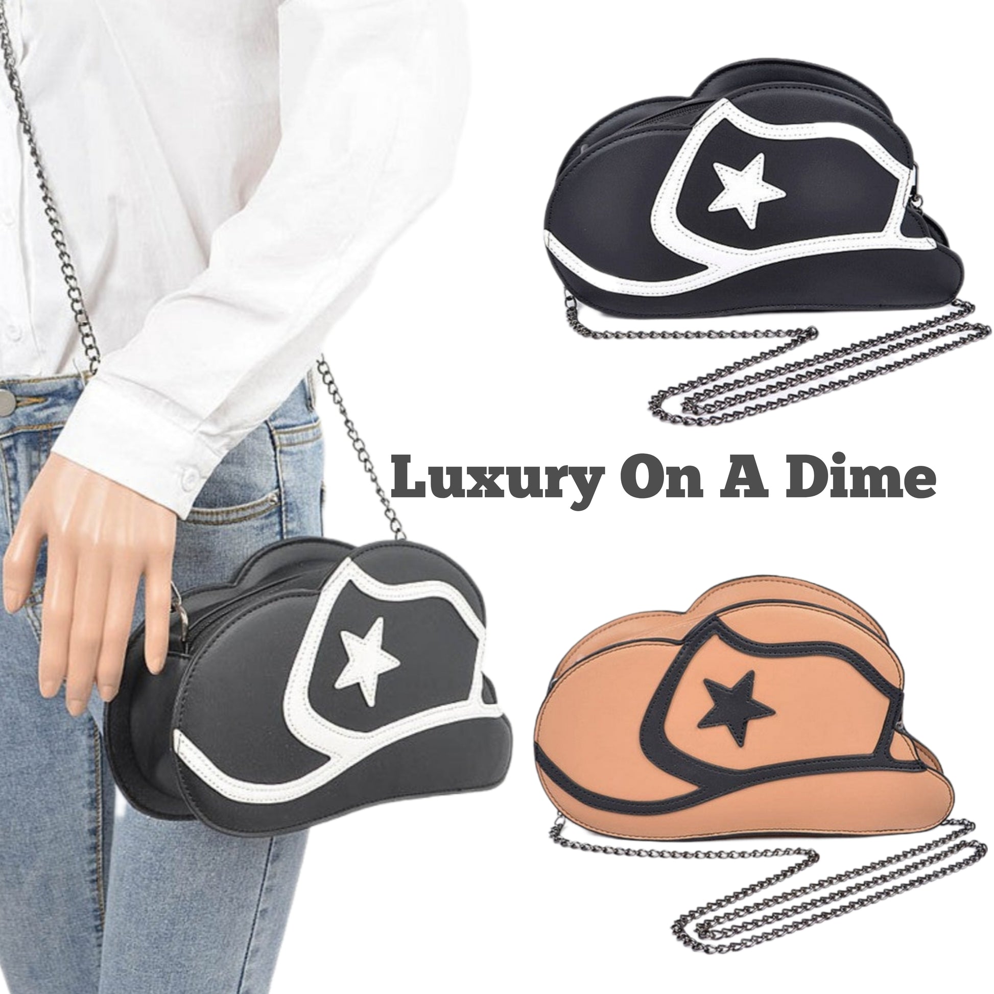 This country western cowboy hat inspired convertible statement bag is a unique choice that will make you feel cowgirl chic.