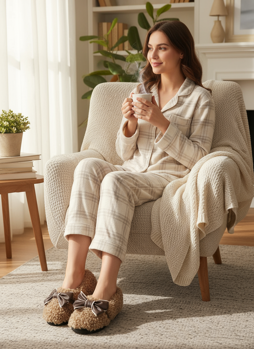 These faux lamb fur flats blend cozy comfort with quiet luxury and soft girl aesthetics. The plush cotton texture and oversized contrasting bow bring together elements of coquette charm, cottagecore warmth, and romantic minimalism. Designed with a flat rubber sole for comfort and ease, these slip-ons channel old money leisure and clean girl softness while maintaining an effortlessly chic appeal. The combination of tactile faux fur and delicate bow detailing creates a dreamy yet polished aesthetic that feels both vintage-inspired and modernly refined. Perfect for lounging, errands, or pairing with relaxed denim, these shoes balance soft glamour with everyday elegance and timeless feminine simplicity.