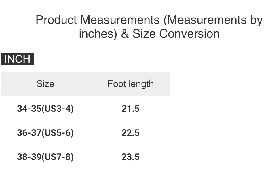 Product Measurements in inches and Size Conversion