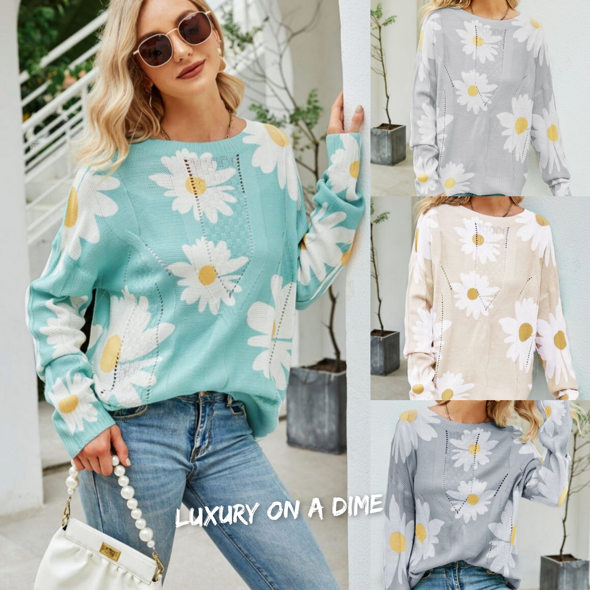 Daisy Knit Print Openwork Detail Lightweight Sweater