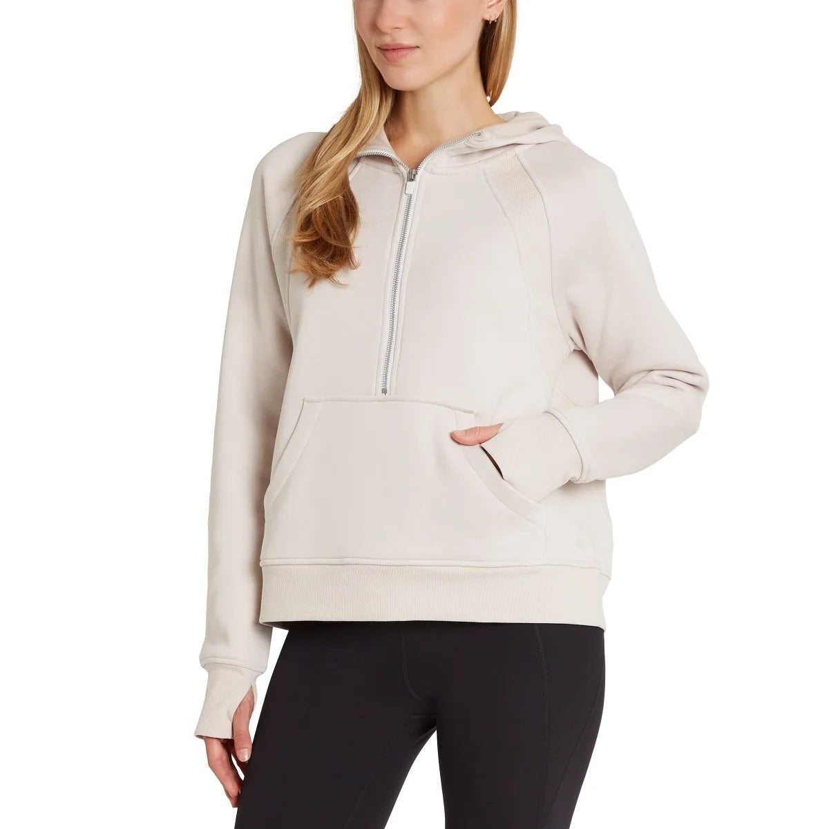 Danskin Women's Half Zip Hoodie Pullover Active Sweater Shirt Activewear Sweatshirt Thumbhole Long Sleeve Top Moonbean Tan