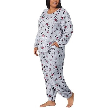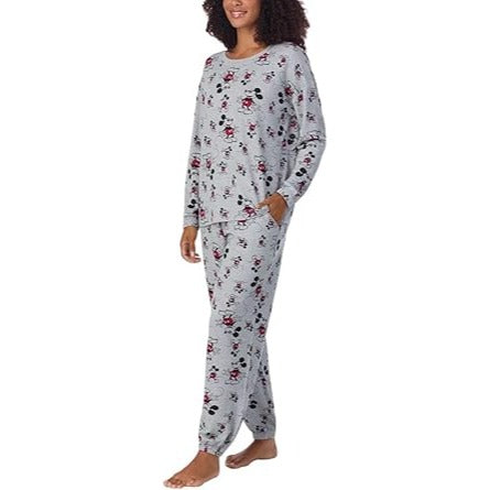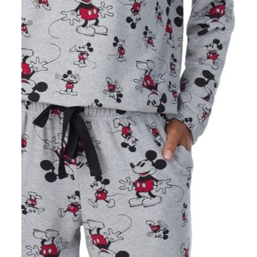 Disney Womens 2 Piece PJs Mickey Mouse Monogram Pajama Set Long Sleeve Top Jogger Elastic Waist Drawstring Pants Sleepwear