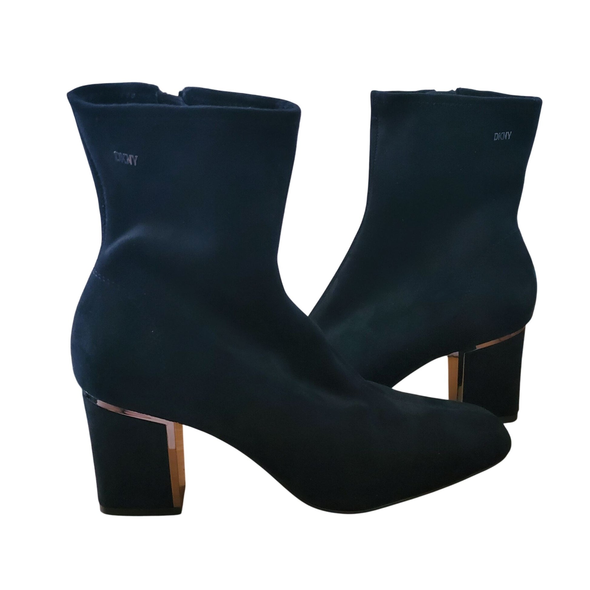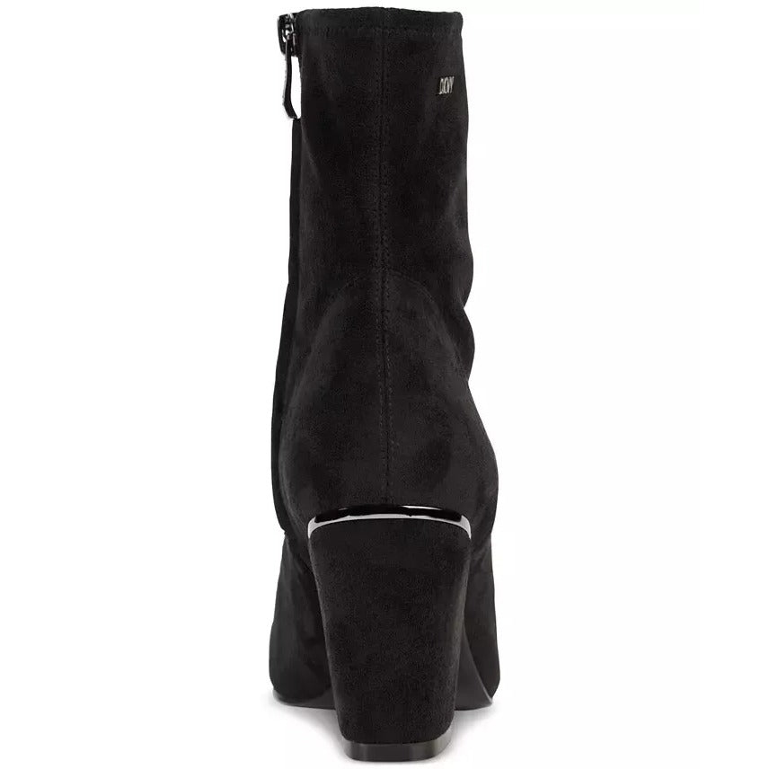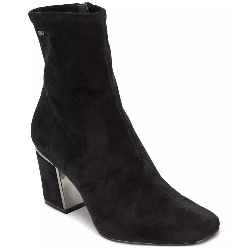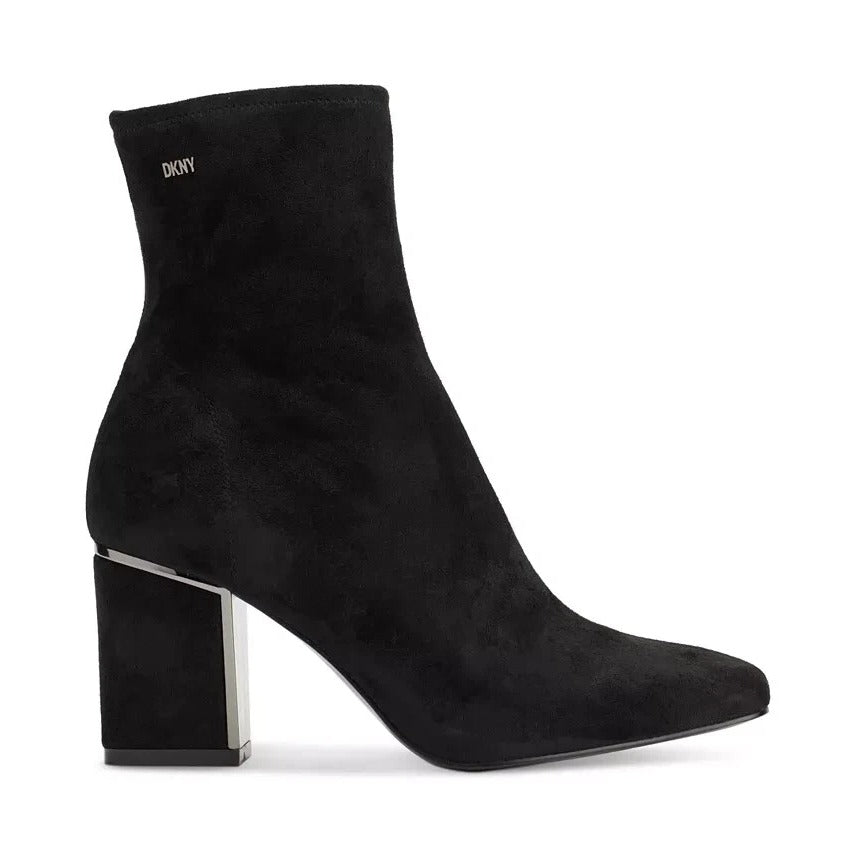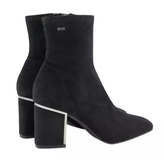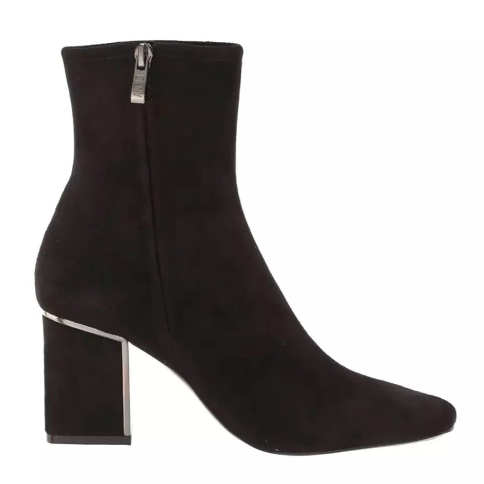 DKNY Bootie Stretch Cavale Microsuede Boots Metallic Silver Black Heel Shoes