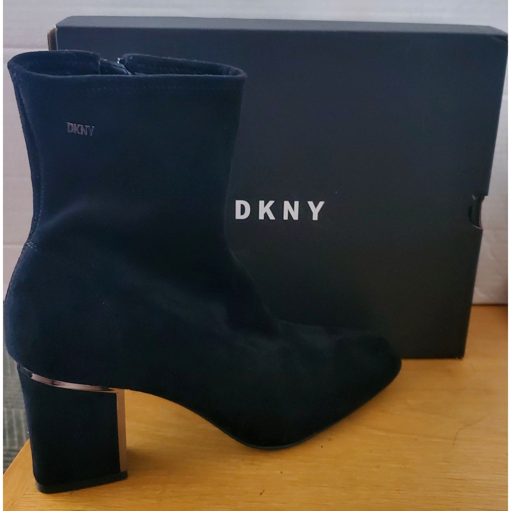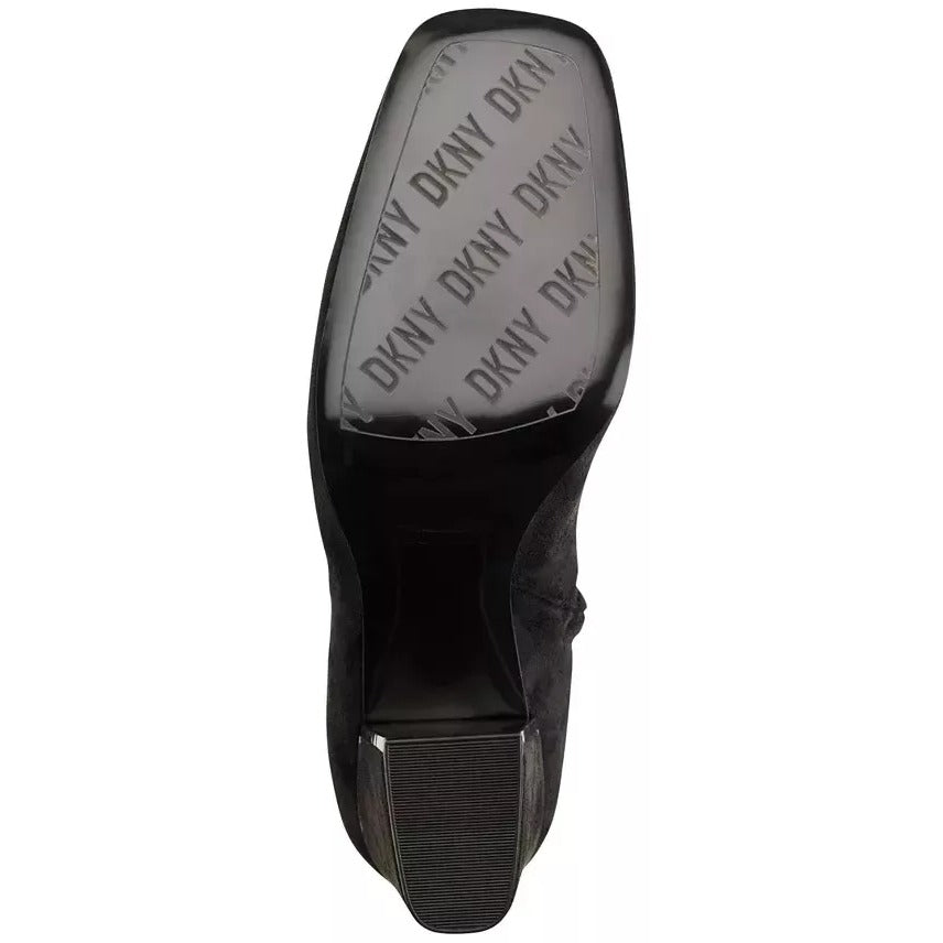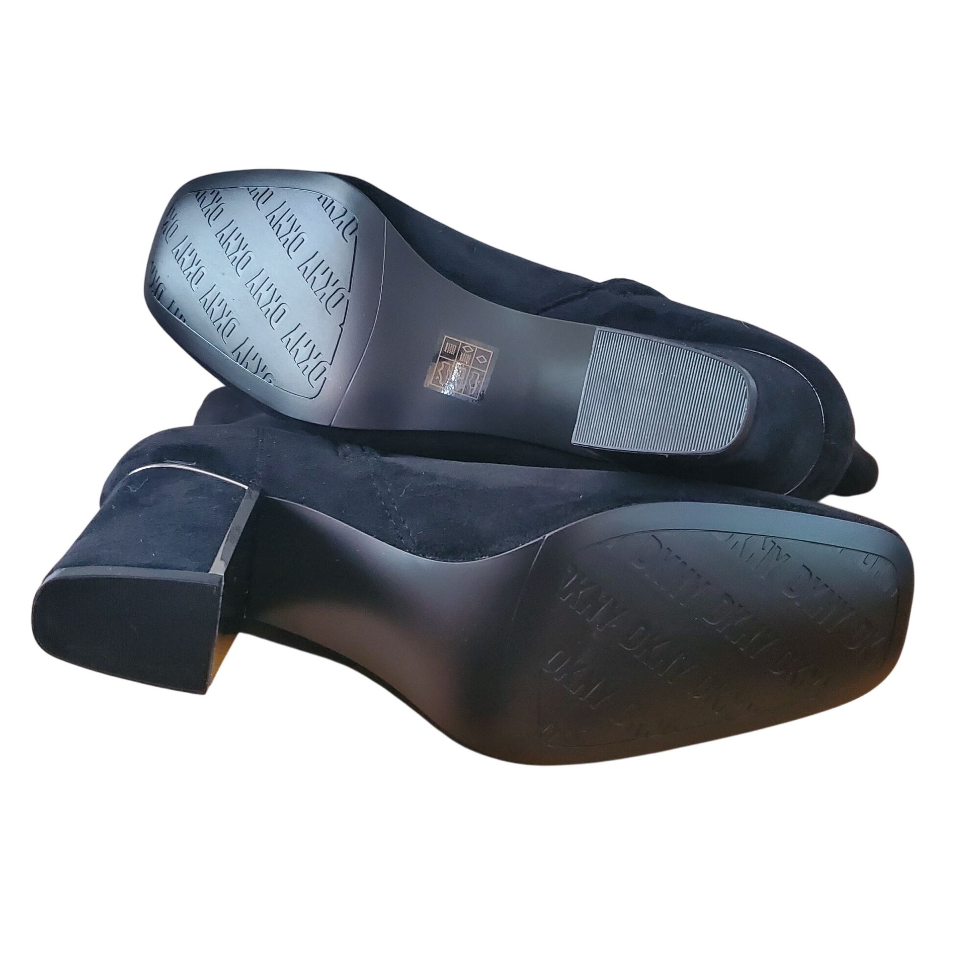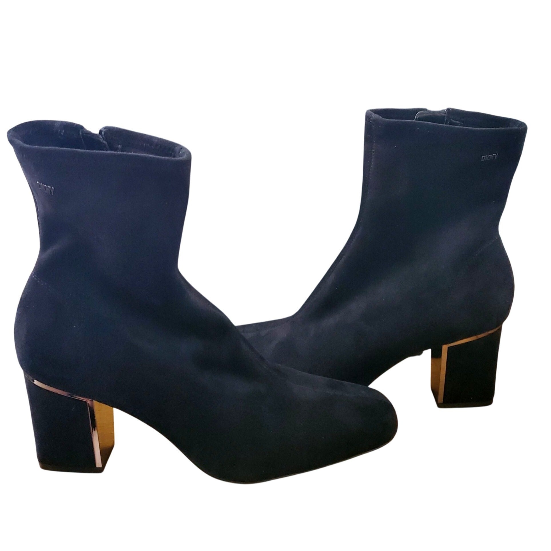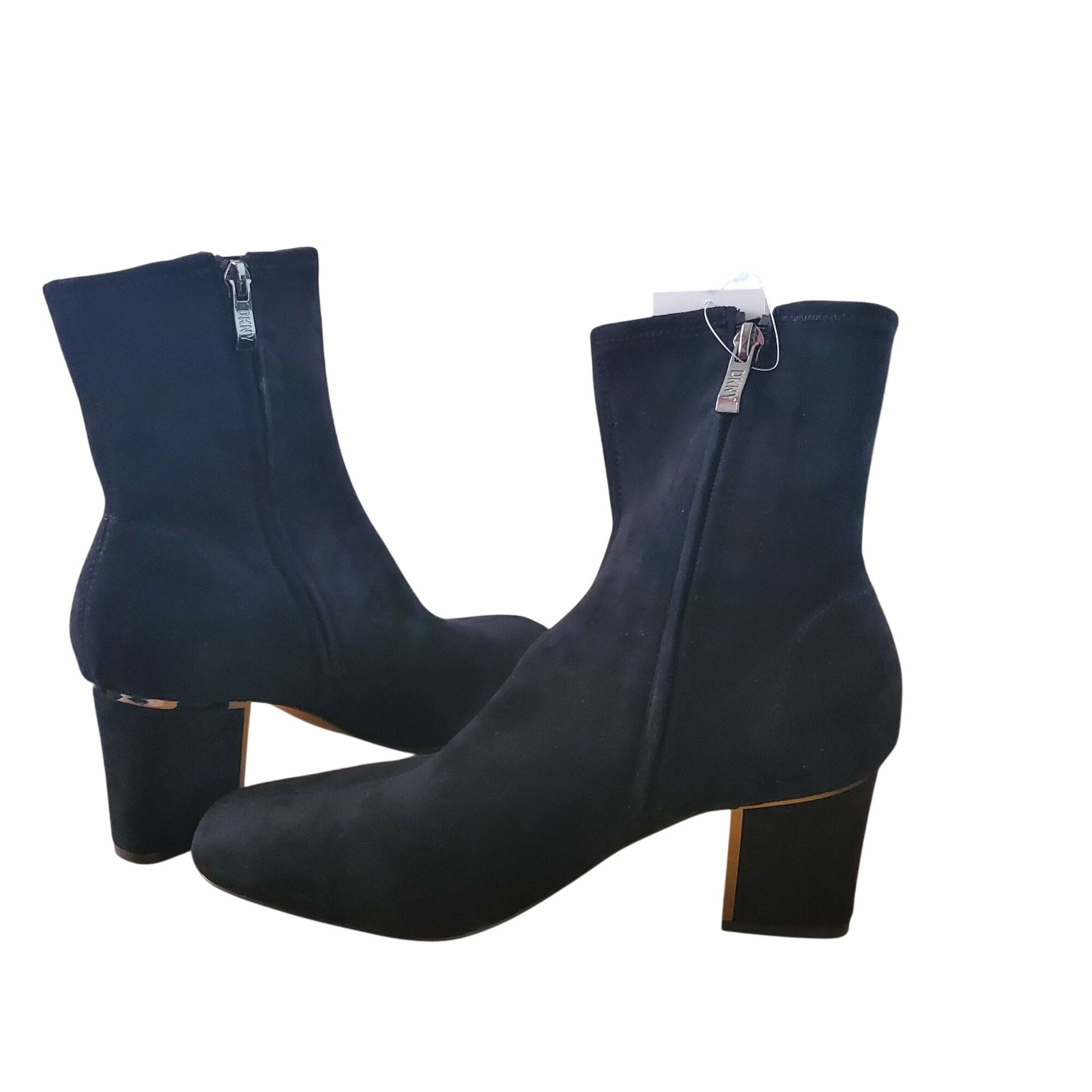 DKNY Bootie Stretch Cavale Microsuede Boots Metallic Silver Black Heel Shoes