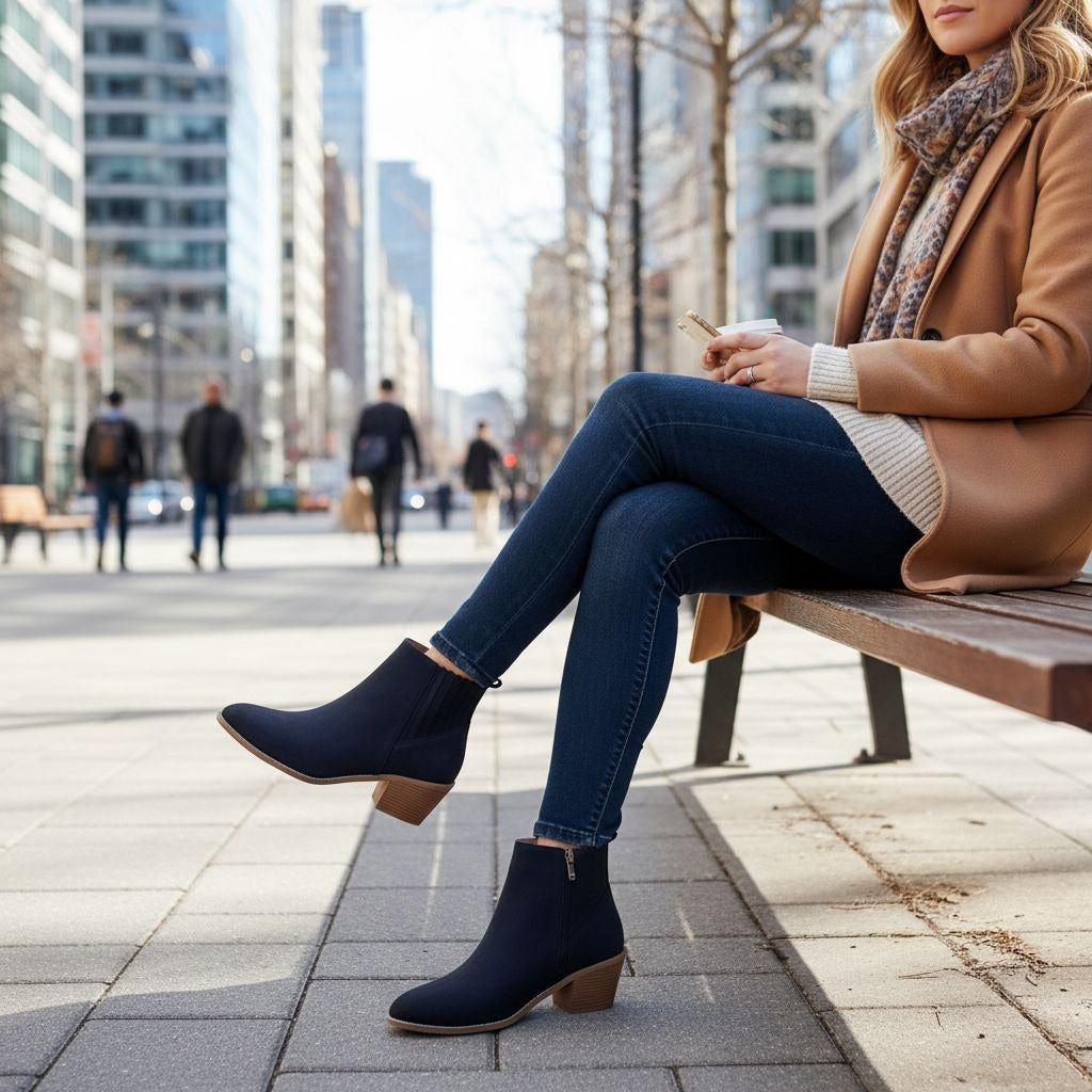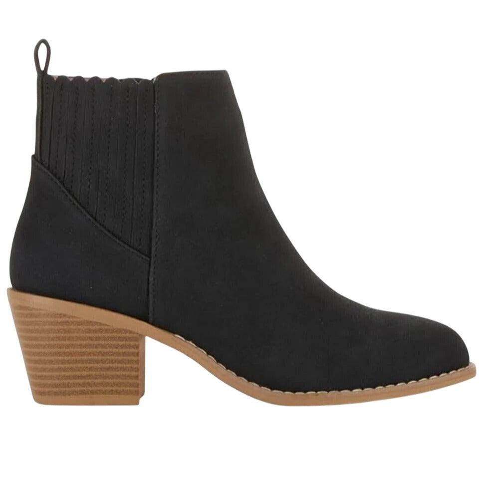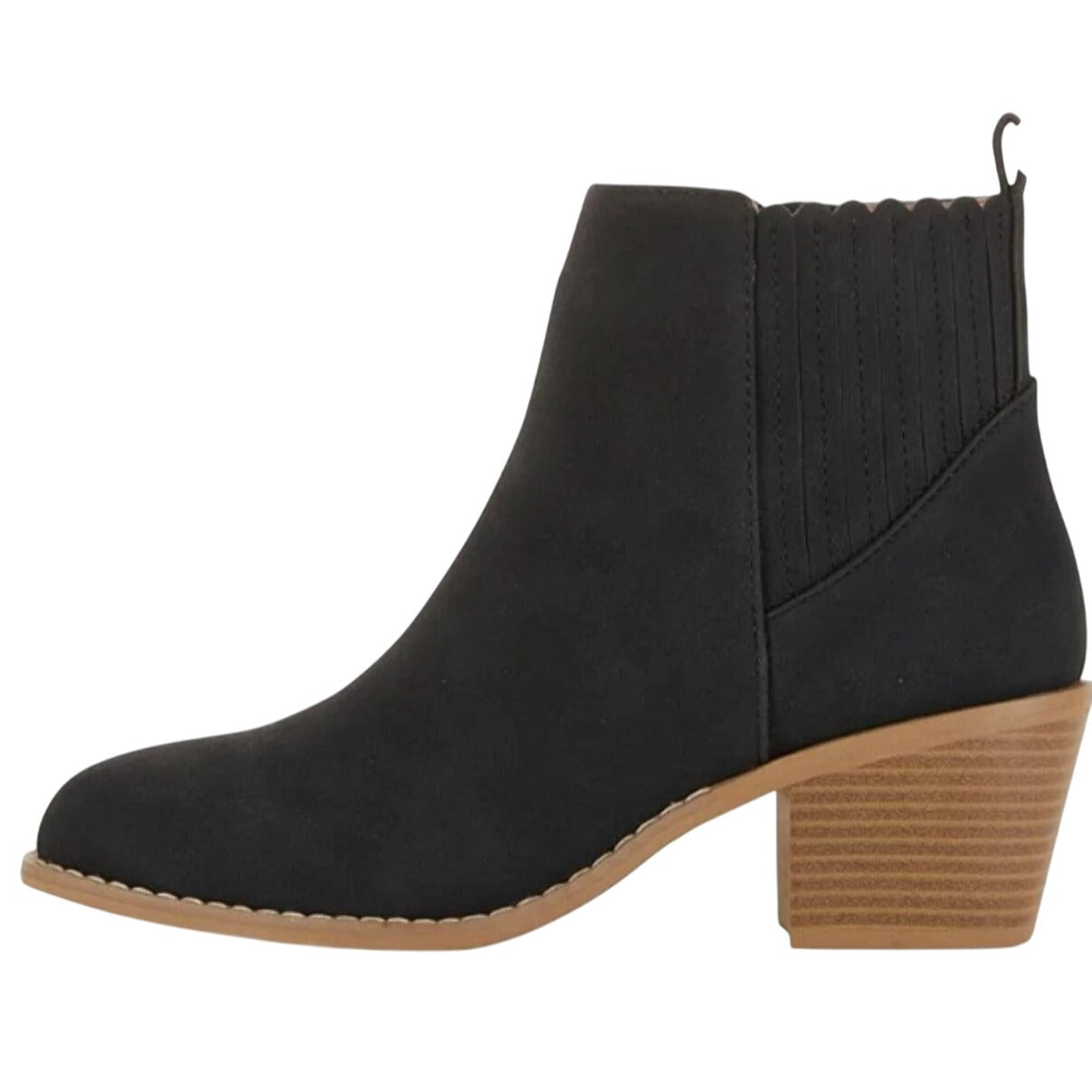 These ankle booties bring modern southern charm with everyday wearability. Designed with a supple manmade vegan leather upper and buffed for a suede-like finish, they strike the perfect balance of softness and structure. The scalloped elastic gore not only adds a unique visual detail but also makes pulling them on and off a breeze, enhanced by a rear pull tab. A sturdy 2-inch stacked heel provides just the right lift for daily comfort, while the cushioned insole supports extended wear. Finished with tonal stitching and flexible construction, this ankle boot seamlessly blends into soft minimalism, rustic western chic, countryside cottagecore, casual, clean girl, and cowgirl aesthetics.