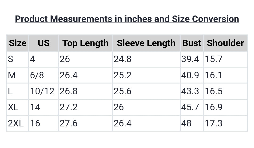 Size | US | Top Length | Sleeve Length | Bust | Shoulder |