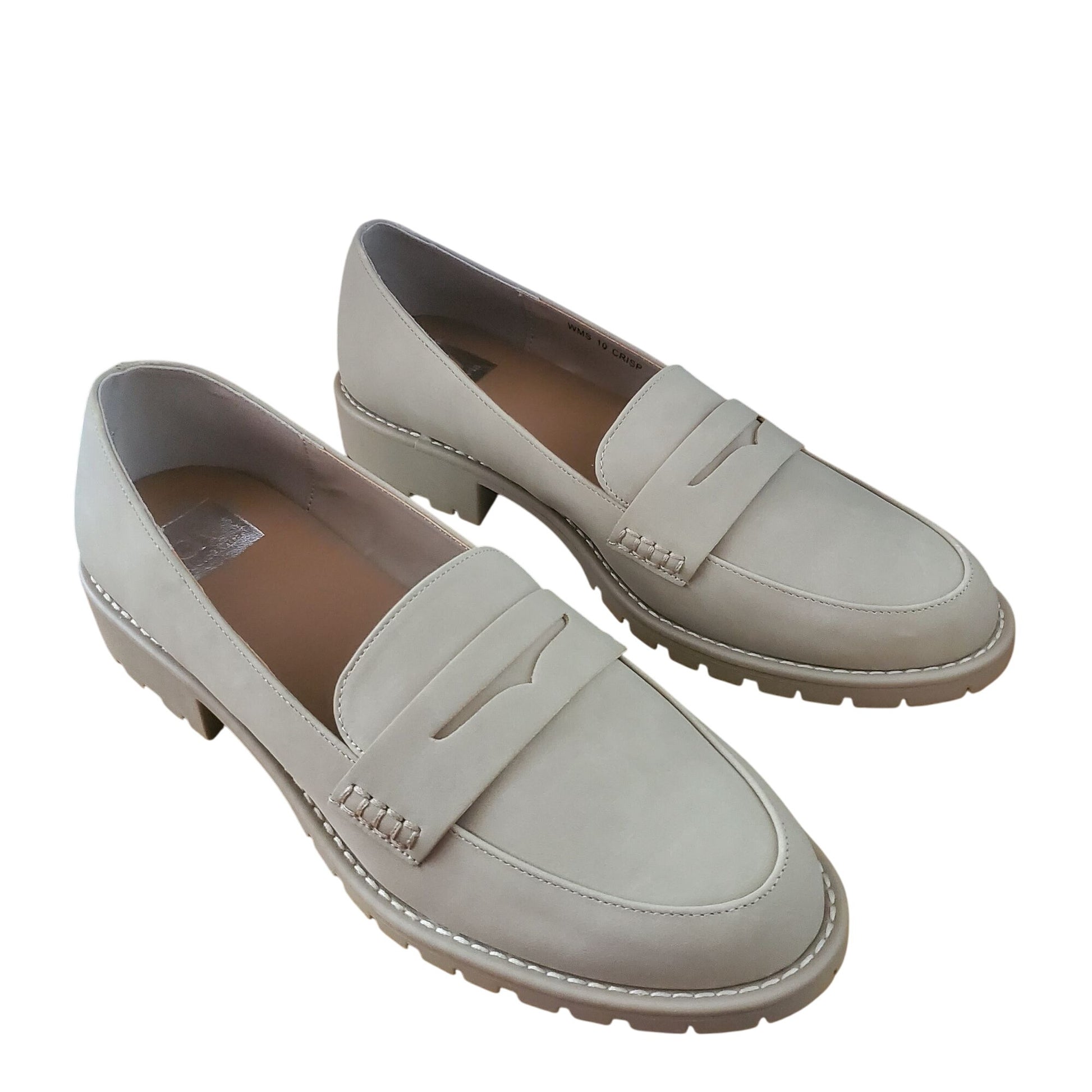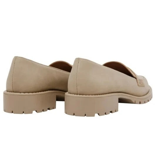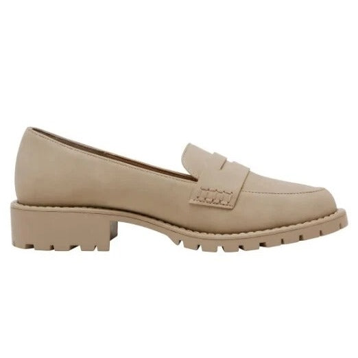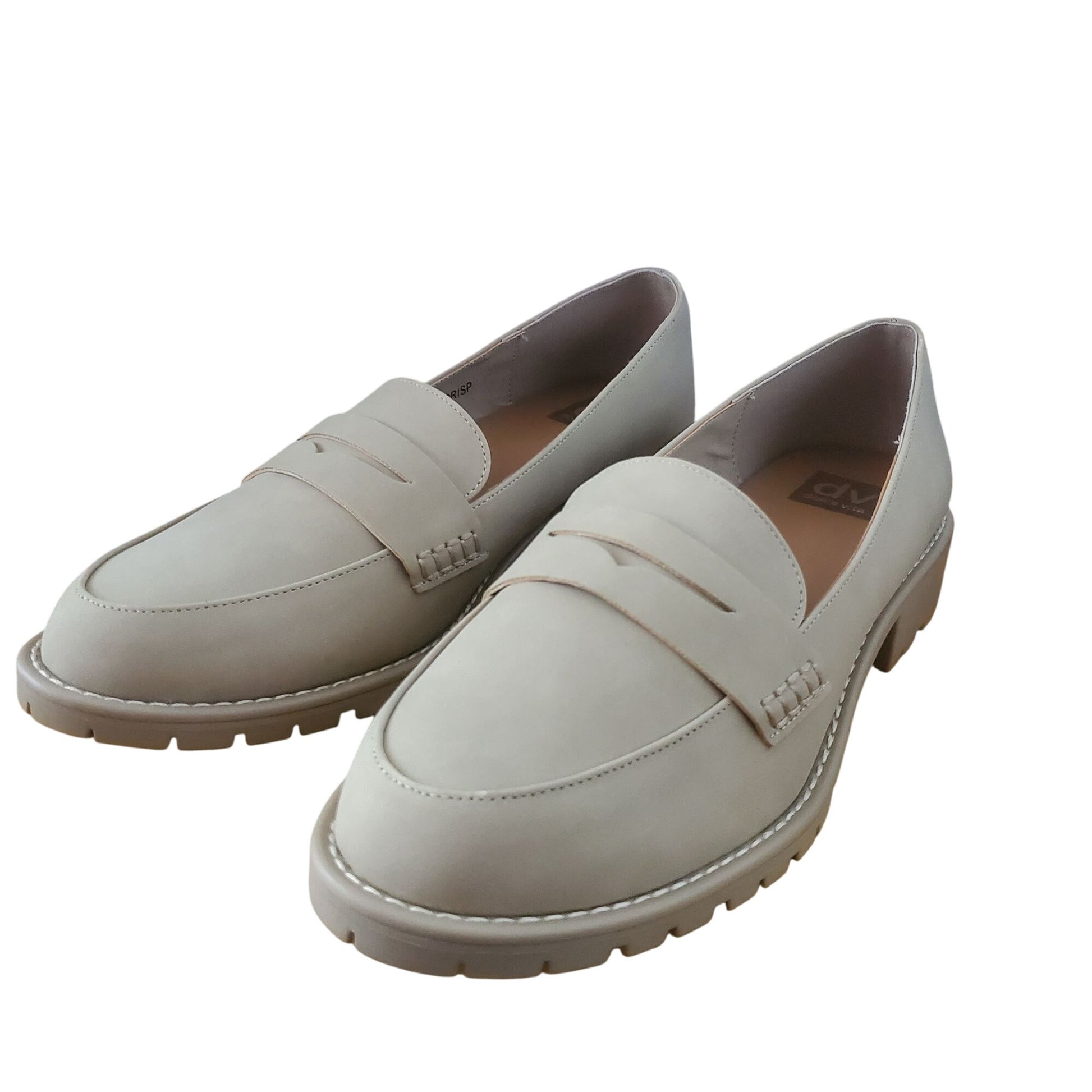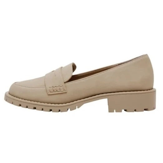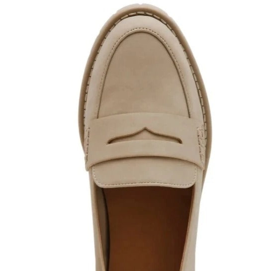 DV Dolce Vita Lug Loafer Crisp Chunky Heel Slip On Shoes Vegan Suede Beige