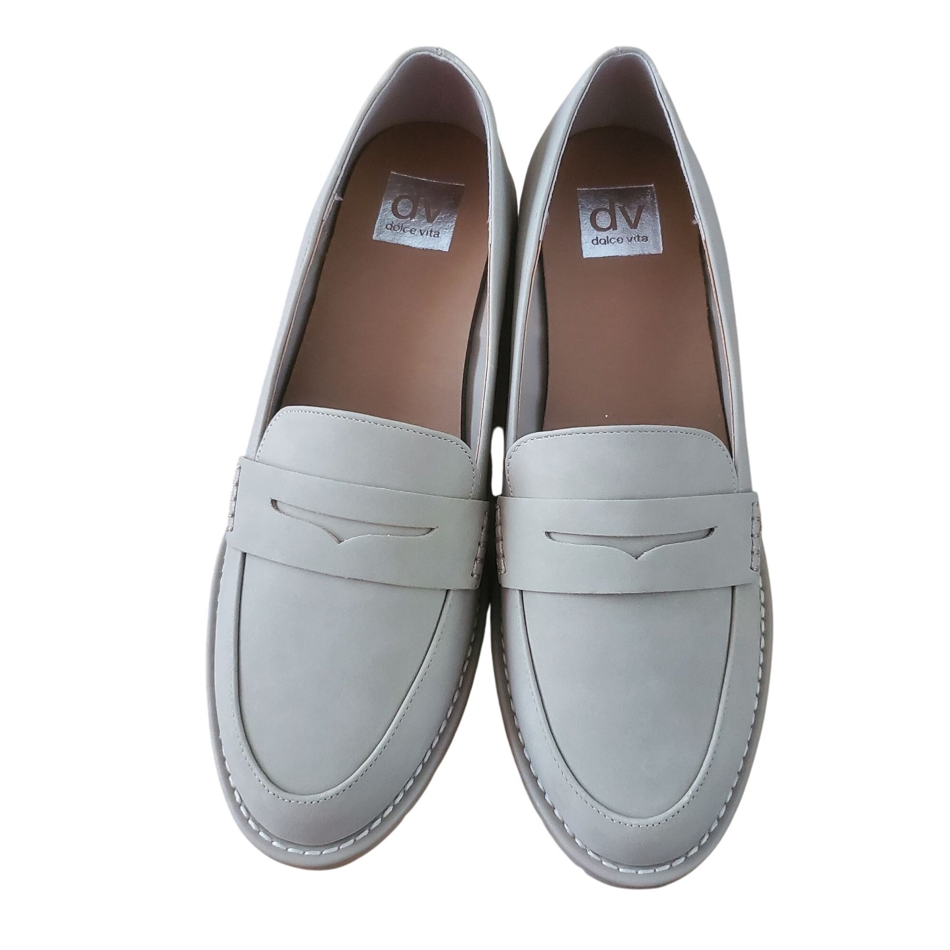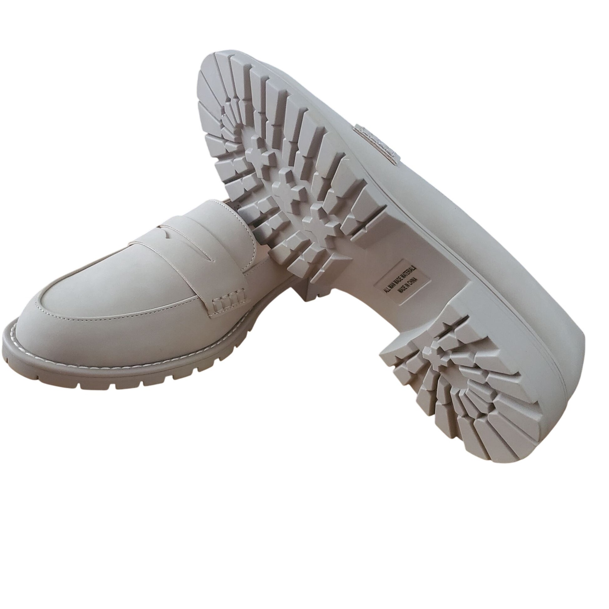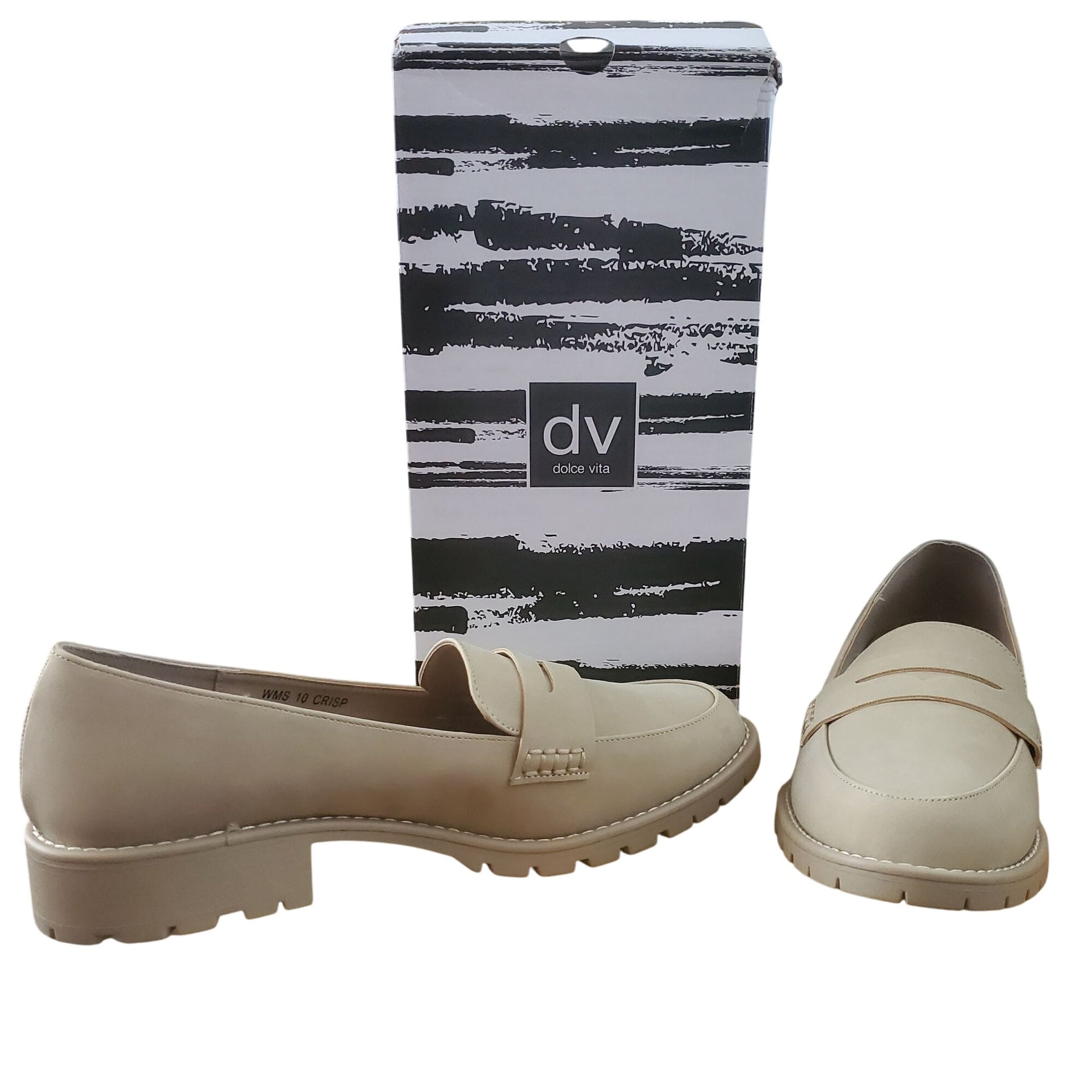DV Dolce Vita Lug Loafer Crisp Chunky Heel Slip On Shoes Vegan Suede Beige