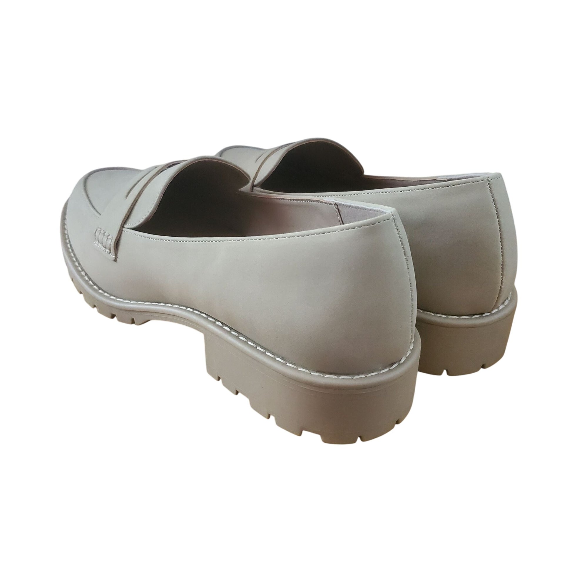 This loafer redefines easy polish with its fusion of comfort, structure, and modern detail. The smooth vegan suede upper creates a refined matte finish, while the penny strap and topstitching add timeless charm. Designed for long days, the cushioned insole offers reliable support, and the chunky lug sole provides traction without excess weight. The slip-on construction allows quick, comfortable wear for busy routines or relaxed settings. With its lightweight feel, sleek profile, and durable construction, this loafer captures clean girl, quiet luxury, soft prep, normcore, commuter chic, and officecore aesthetics with a minimalist edge and practical sensibility.