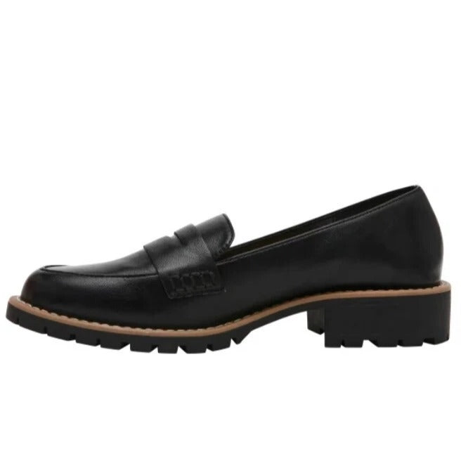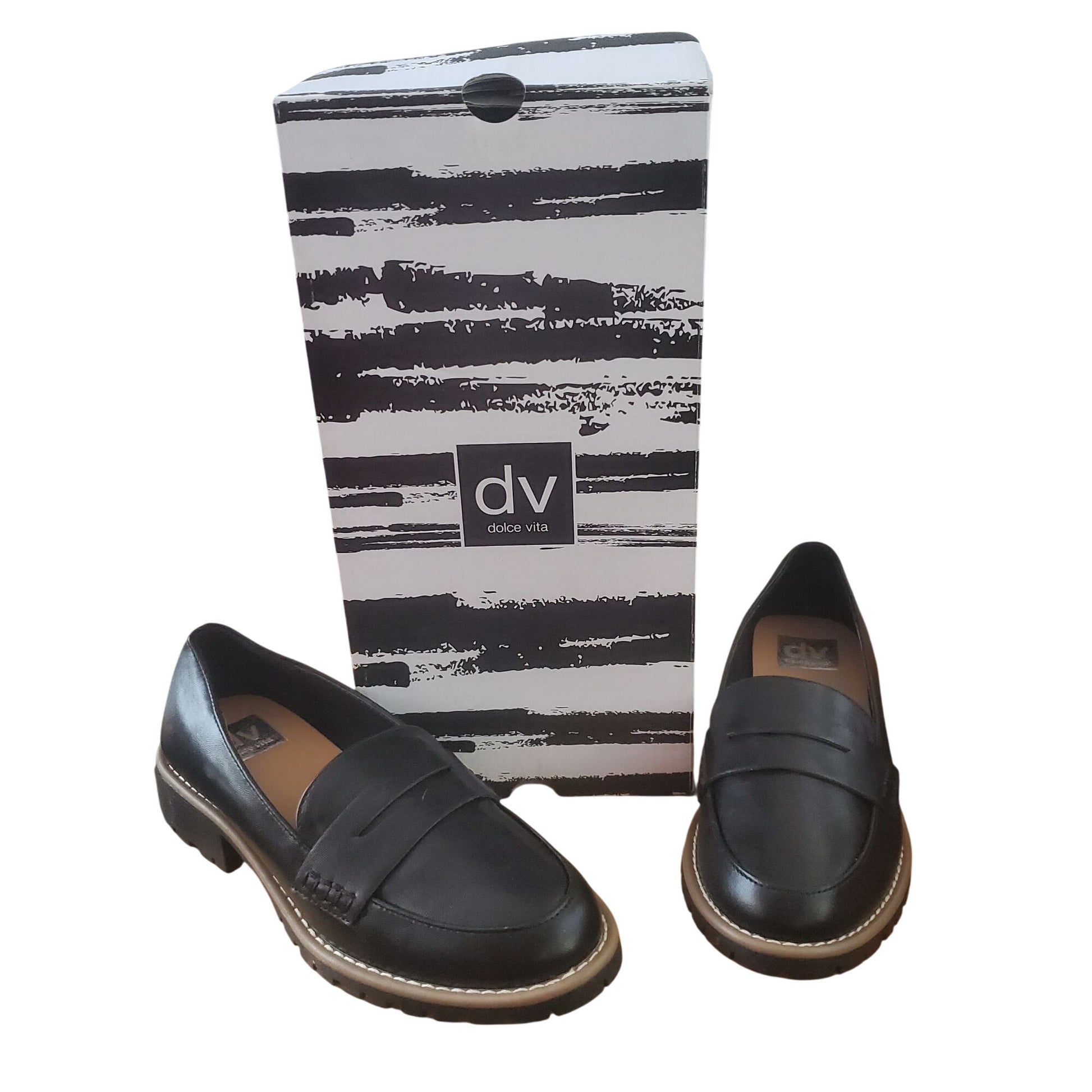 DV Dolce Vita Lug Loafer Crisp Chunky Heel Slip On Shoes Vegan Suede Black