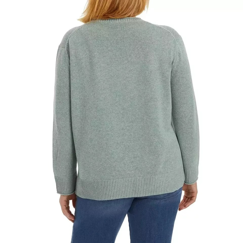 Ella Moss Womens Crew Neck Soft Knit Pullover Sweater Long Sleeve Knitwear High-Low Top Green