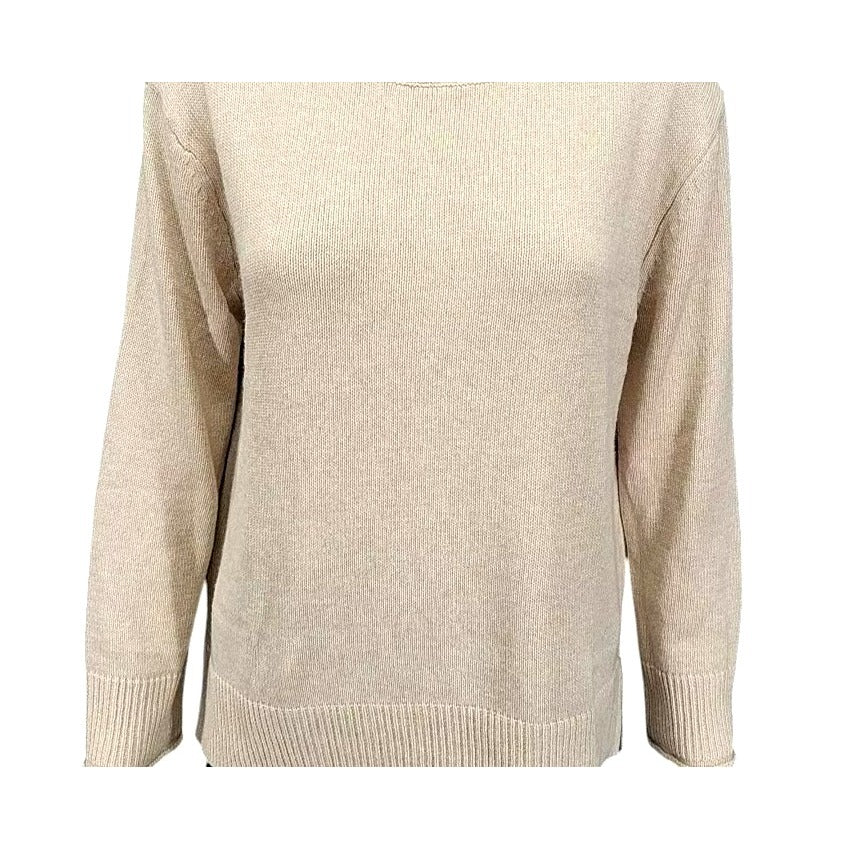 Ella Moss Womens Crew Neck Soft Knit Long Sleeve Pullover Sweater Knitwear High-Low Top Tan