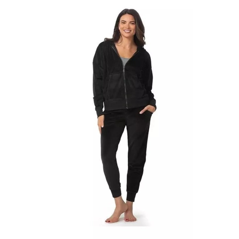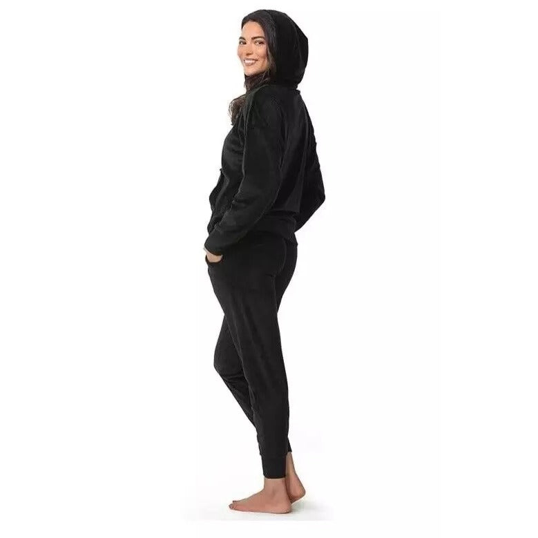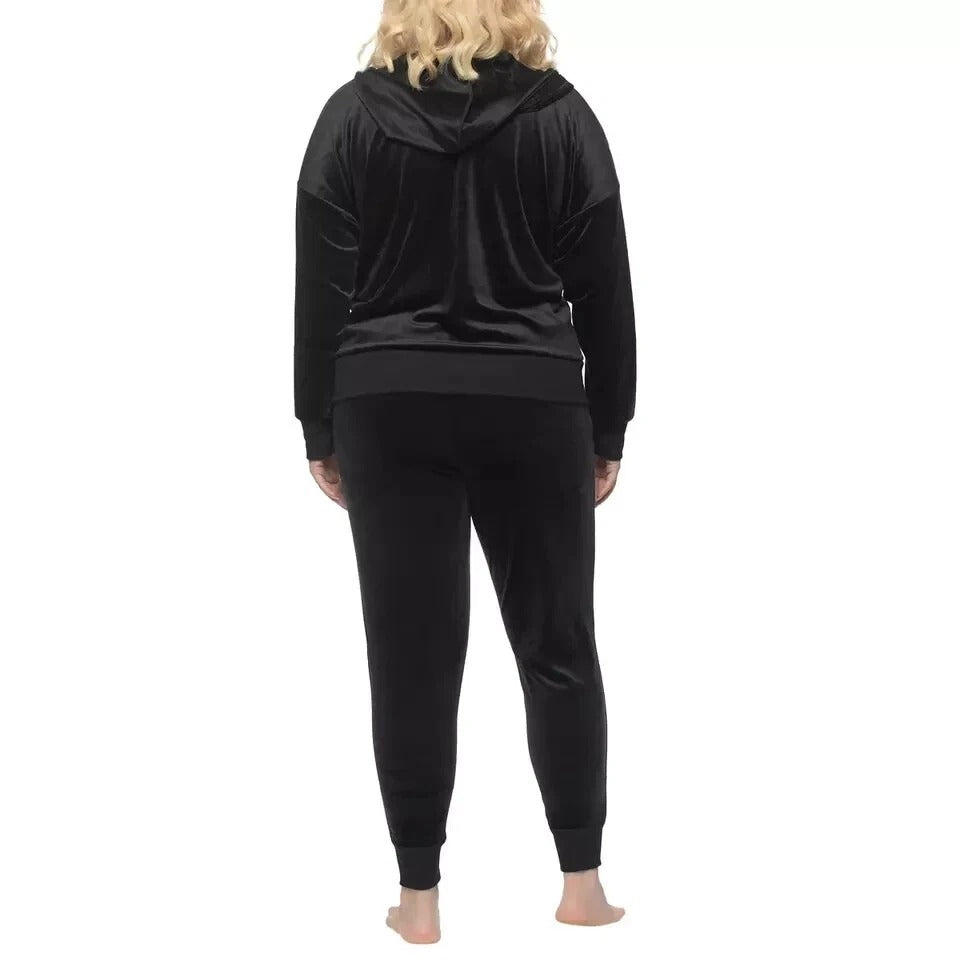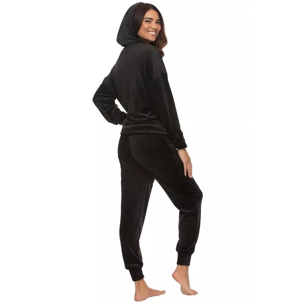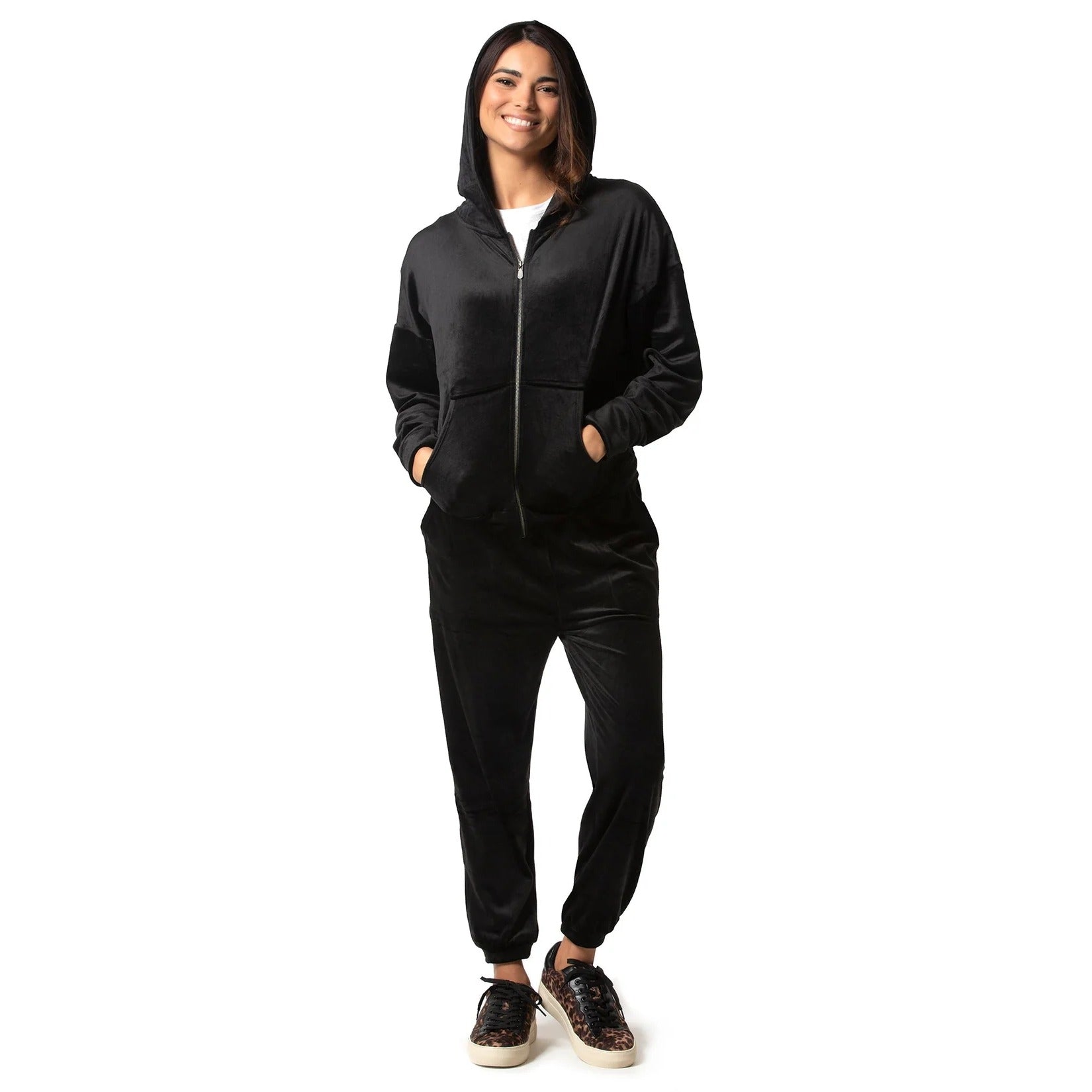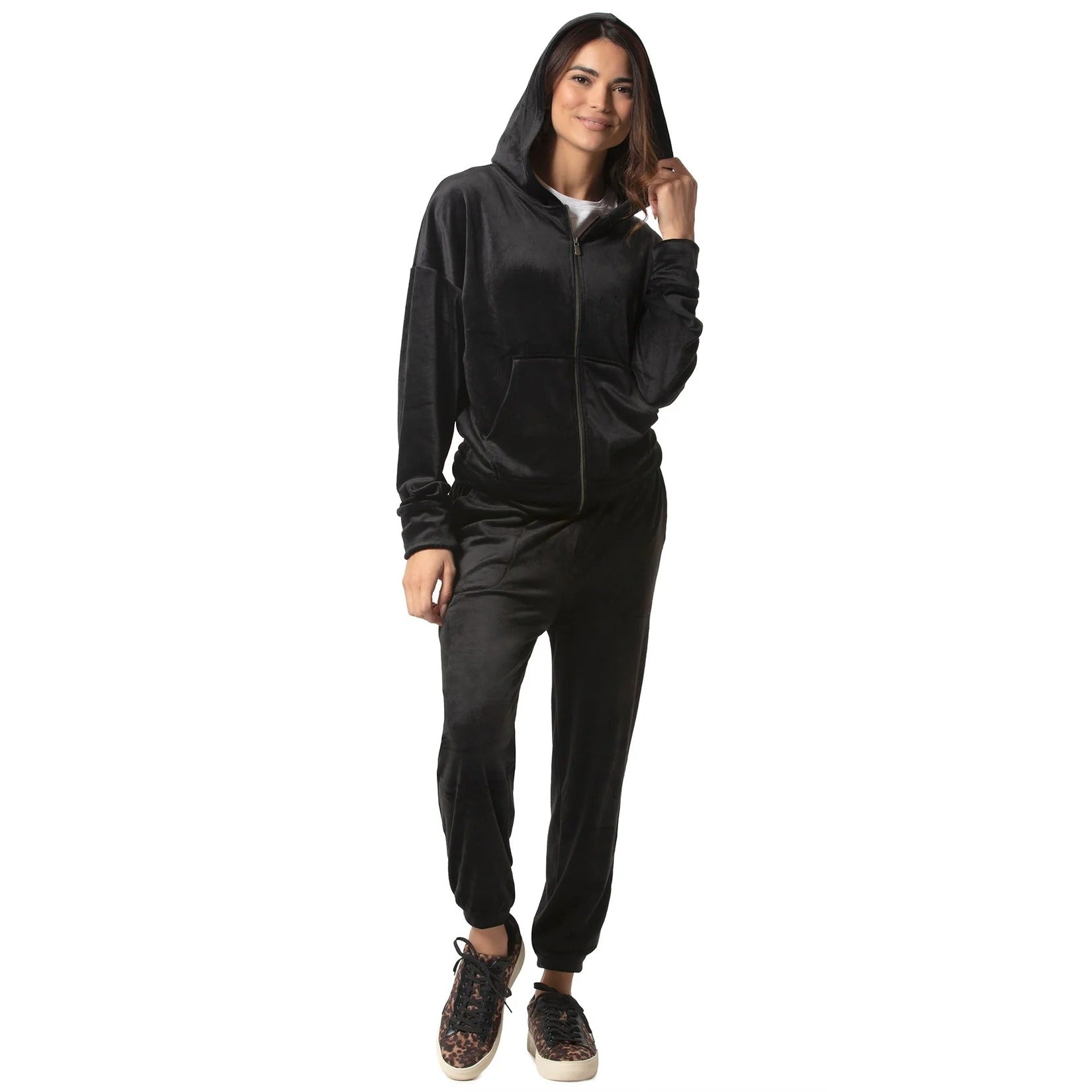 Felina 2 Piece Matching Velour Zip Hoodie Jacket Jogger Pants Set Tracksuit Black