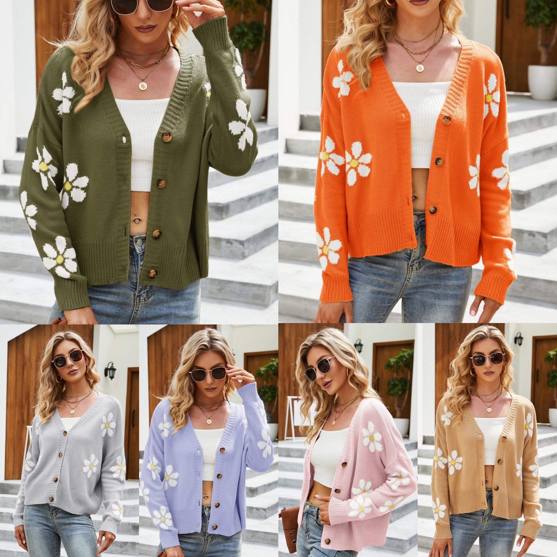 Retro Knit Daisy Flower Classic Button Front Long Sleeve Cardigan Fun 70s Floral
