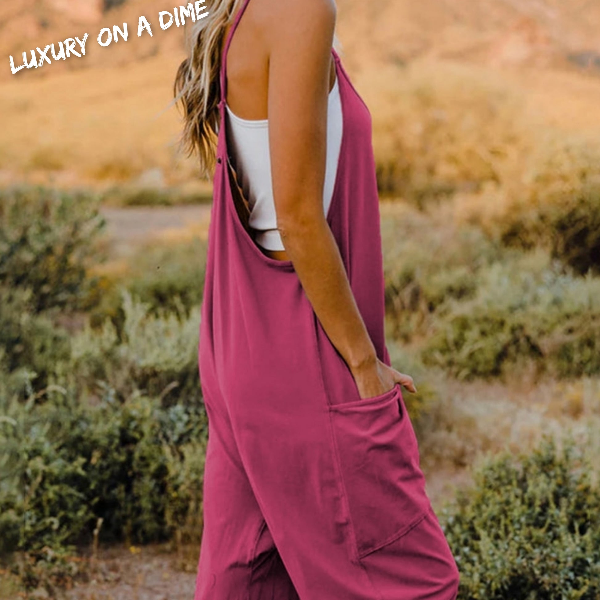 Oversized Hippie V-Neck Sleeveless Wide Leg Pant Pocket Jumpsuit