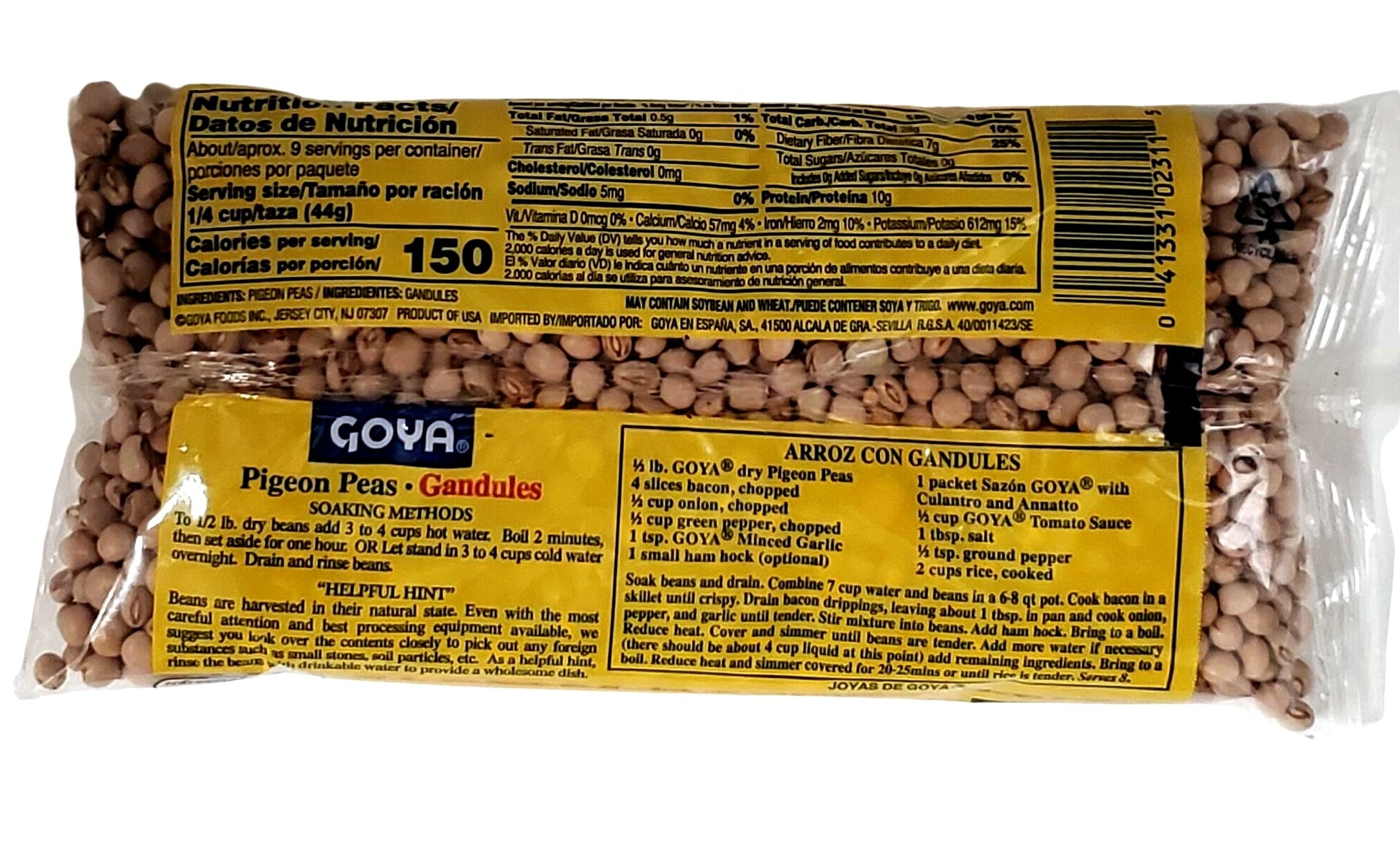 Elevate your culinary creations with Goya Gandules (Pigeon Peas), also known as Cajanus cajan, Gandules, Guandules, and Toor Dal. These dry pigeon peas come in a 14oz bag, perfect for adding a delicious and nutritious element to your favorite dishes.