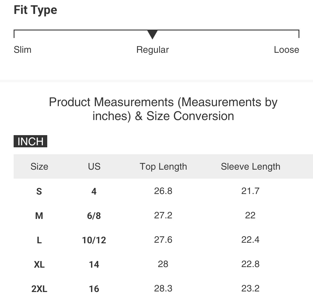| Size | US | Top Length | Sleeve Length | Bust | Shoulder |