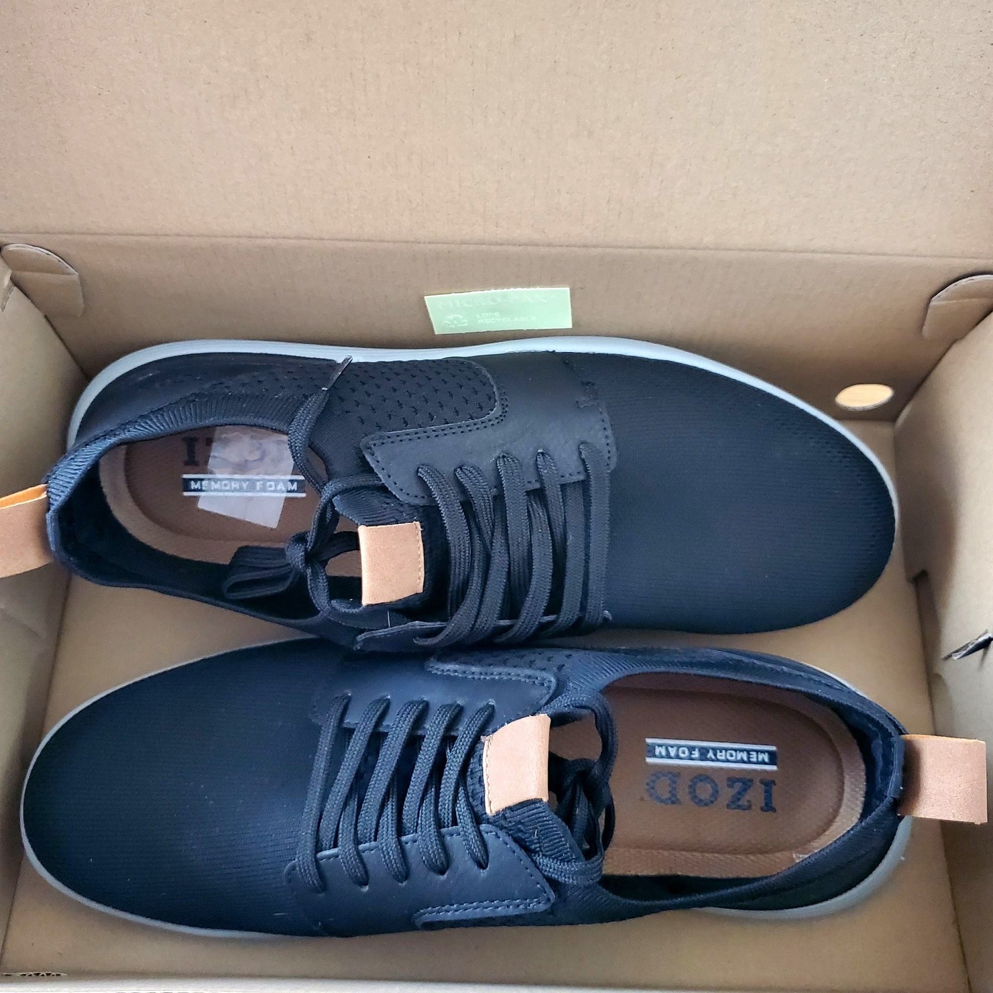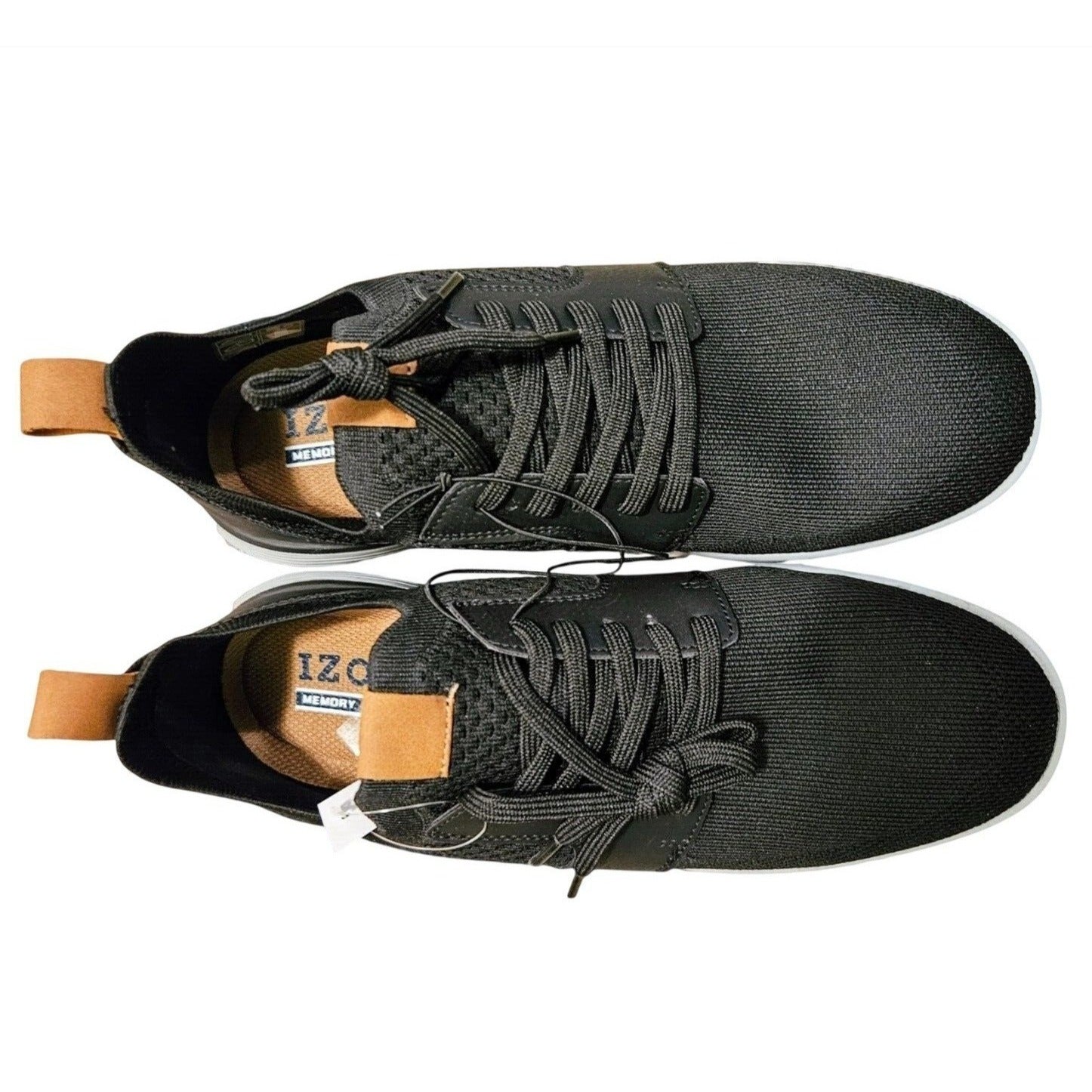 IZOD Men's Slip-on Lace up Sneaker Bannister Memory Foam Shoes Black