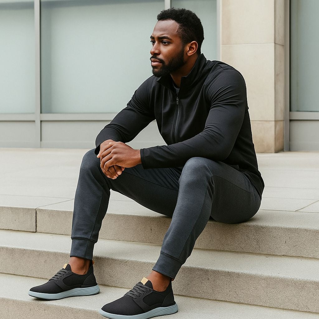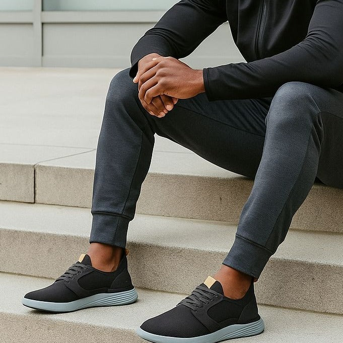 A versatile hybrid between a modern athletic sneaker and a streamlined everyday essential, this black lace-up shoe fuses performance comfort with casual polish. The breathable flex knit upper forms to the foot like a sock, while tonal overlays and a contrasting sole add sharp, structured contrast. Designed for seamless wear with athleisure sets, joggers, or even clean-lined denim, this lightweight trainer offers memory foam cushioning and a flexible rubber outsole that supports all-day motion. Ideal for commuting, casual Fridays, or low-key weekends, its minimal design and ease-of-wear slip-on entry make it a favorite in normcore, soft prep, and clean, minimal silhouette with everyday versatility
