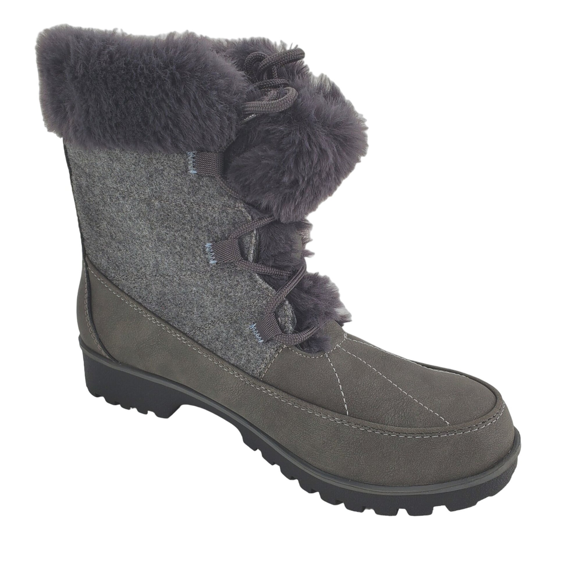 A modern blend of rugged durability and cozy comfort, these weather-ready boots are perfect for cold days and unpredictable conditions. The lace-up design brings a touch of outdoor spirit, complemented by a soft faux-fur collar that adds both warmth and style. Crafted from vegan nubuck and faux suede, the exterior is water-resistant and easy to maintain, while the plush shearling lining keeps your feet insulated and dry. Memory foam insoles deliver customized cushioning, and the All-Terra traction outsoles provide stability and control across diverse surfaces. Ideal for winter walks, errands, or travel, these boots balance function with a touch of effortless charm.
