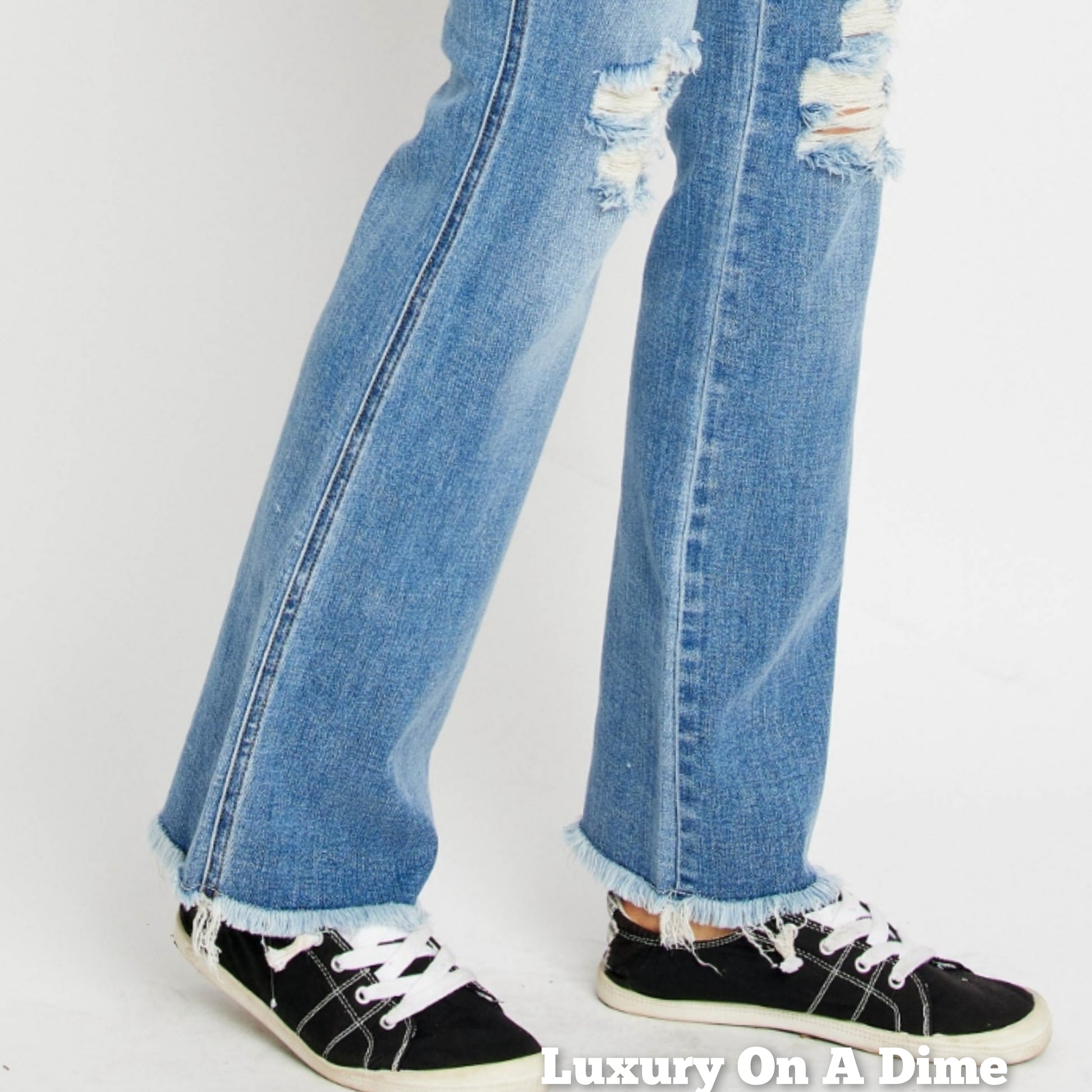 Retro 90s Distressed Bootcut Jeans Torn Hem Mid-Rise Denim Pants Judy Blue