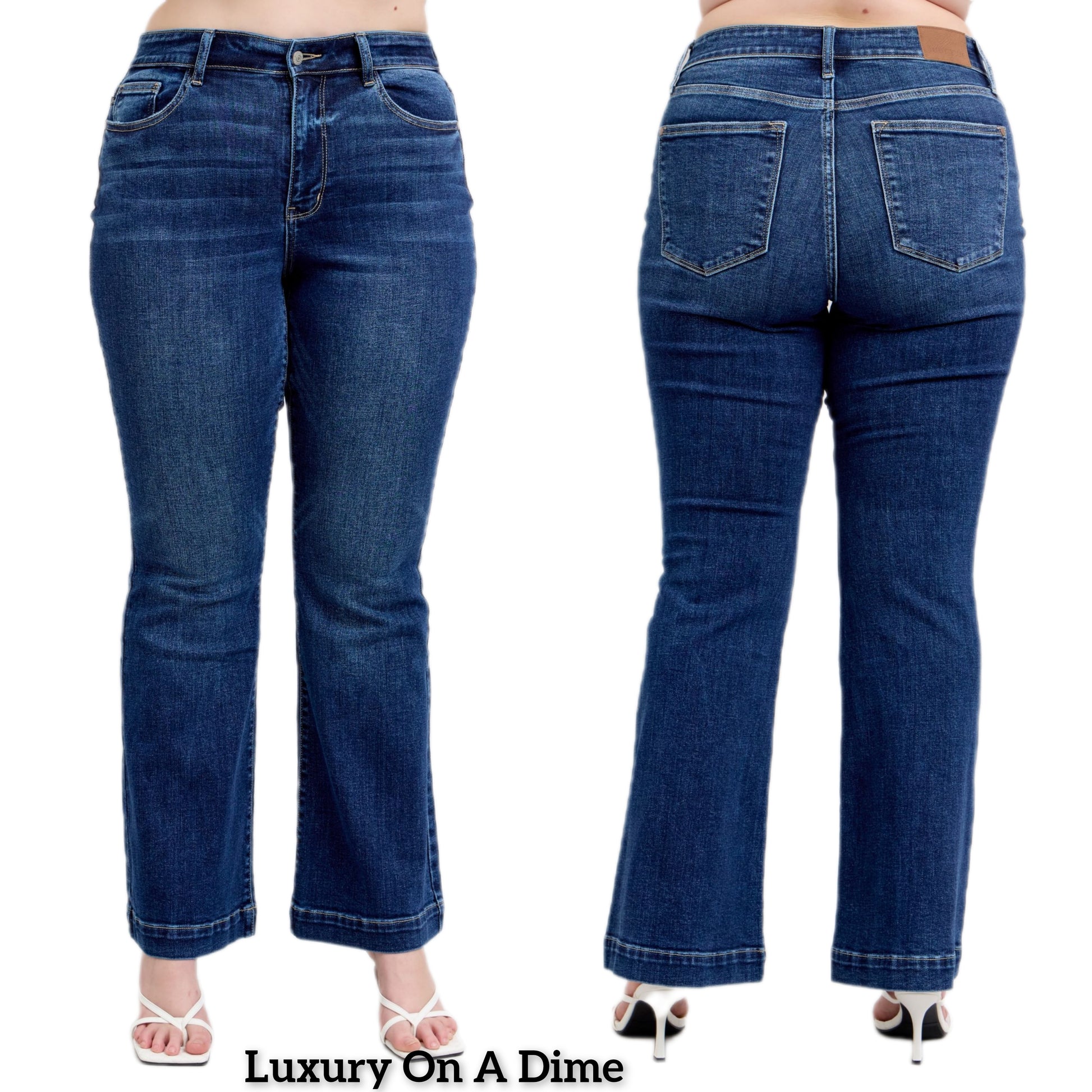 Judy Blue Retro High-Rise Waist Slim Fit Pants Tapered Flare Leg Denim Jeans