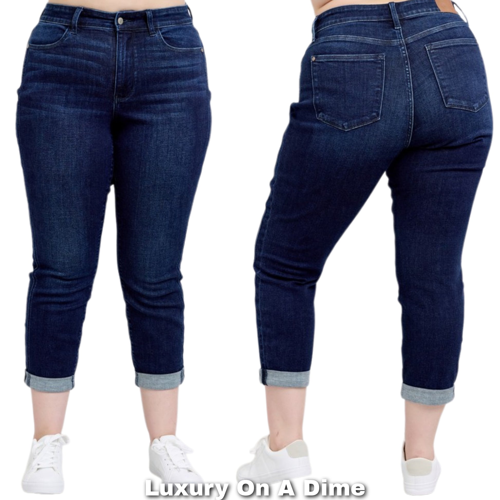 Judy Blue High-Rise Boyfriend Jeans Cuffed Straight Leg Relaxed Denim Pants Plus Size Available