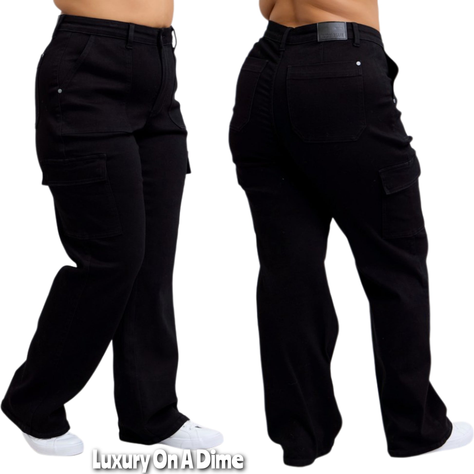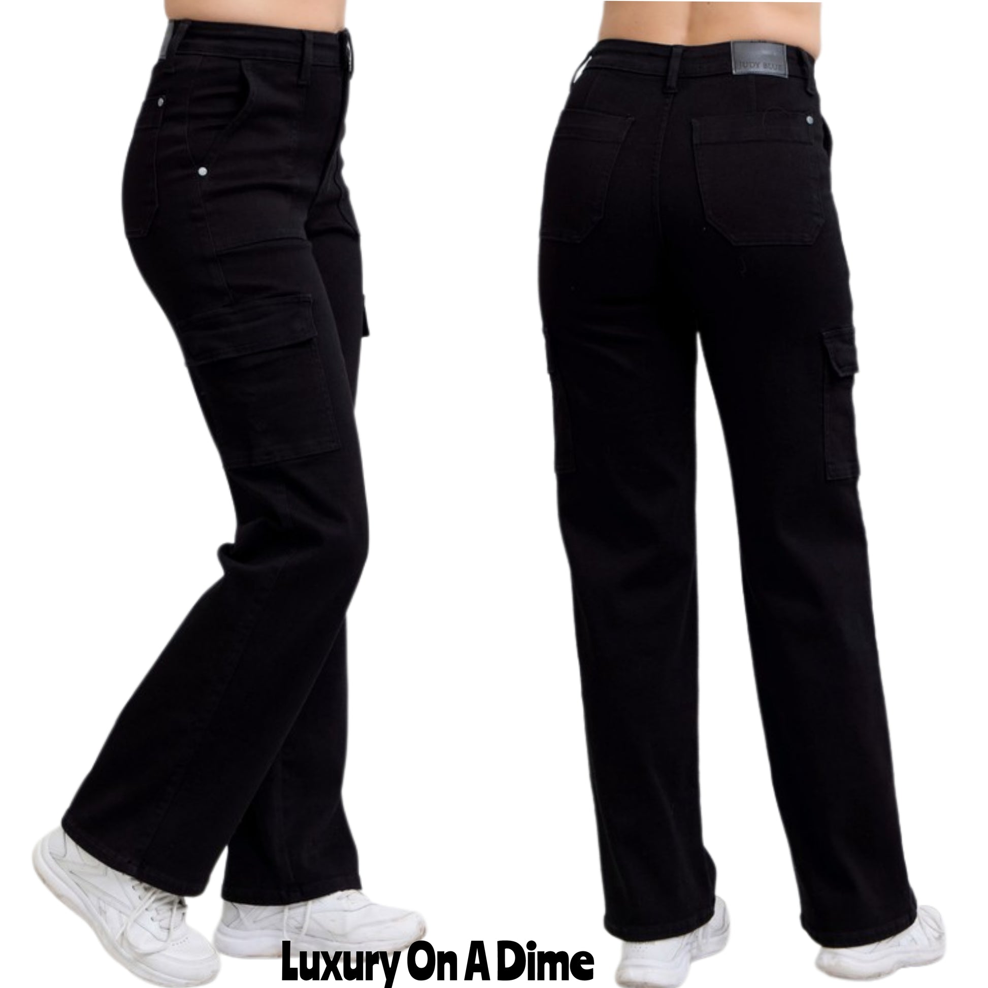 Judy Blue Cargo High-Rise 90s Denim Pants Boyfriend Wide Leg Utility Jeans