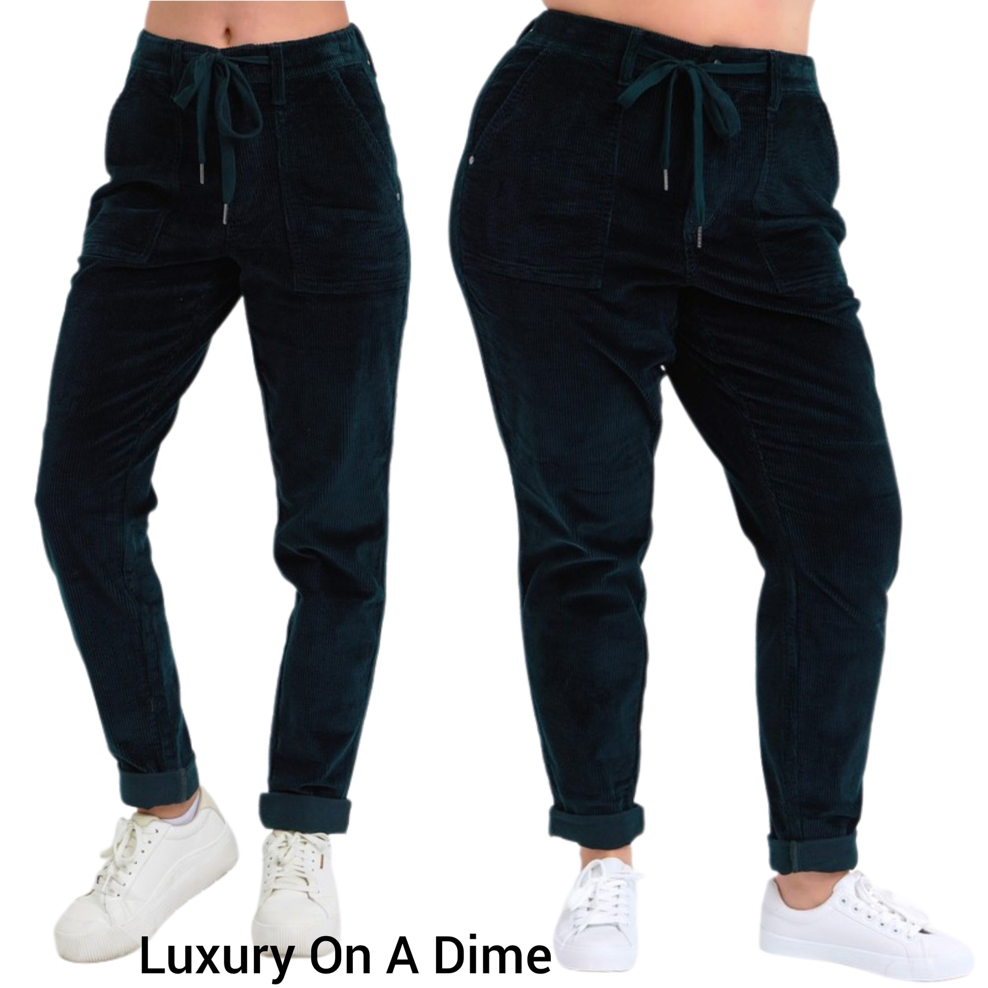 Judy Blue Corduroy High-Rise Drawstring Straight Tapered Cuffed Jogger Pants