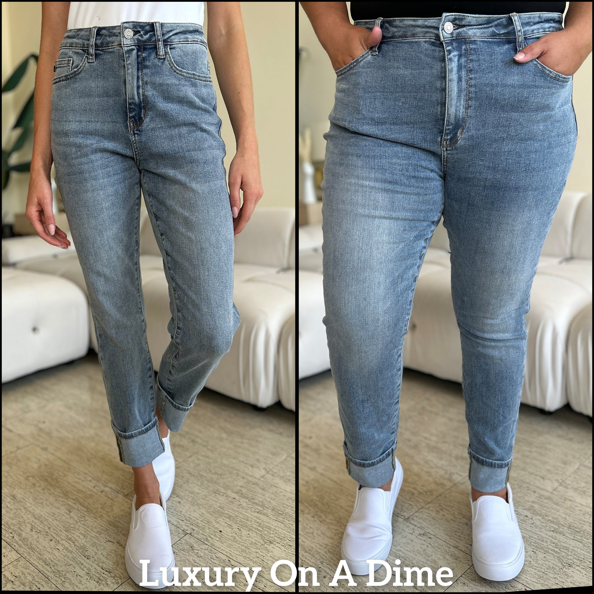 Judy Blue High Rise Waist Skinny Stretch Slim Fit Denim Cuffed Hem Jean Pants