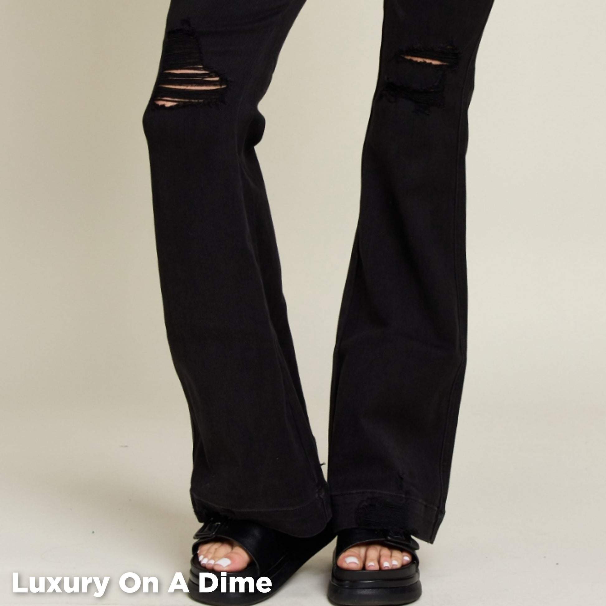 Distressed Tummy Control High Waist Skinny Denim Flare Bell Bottom Jean Pants