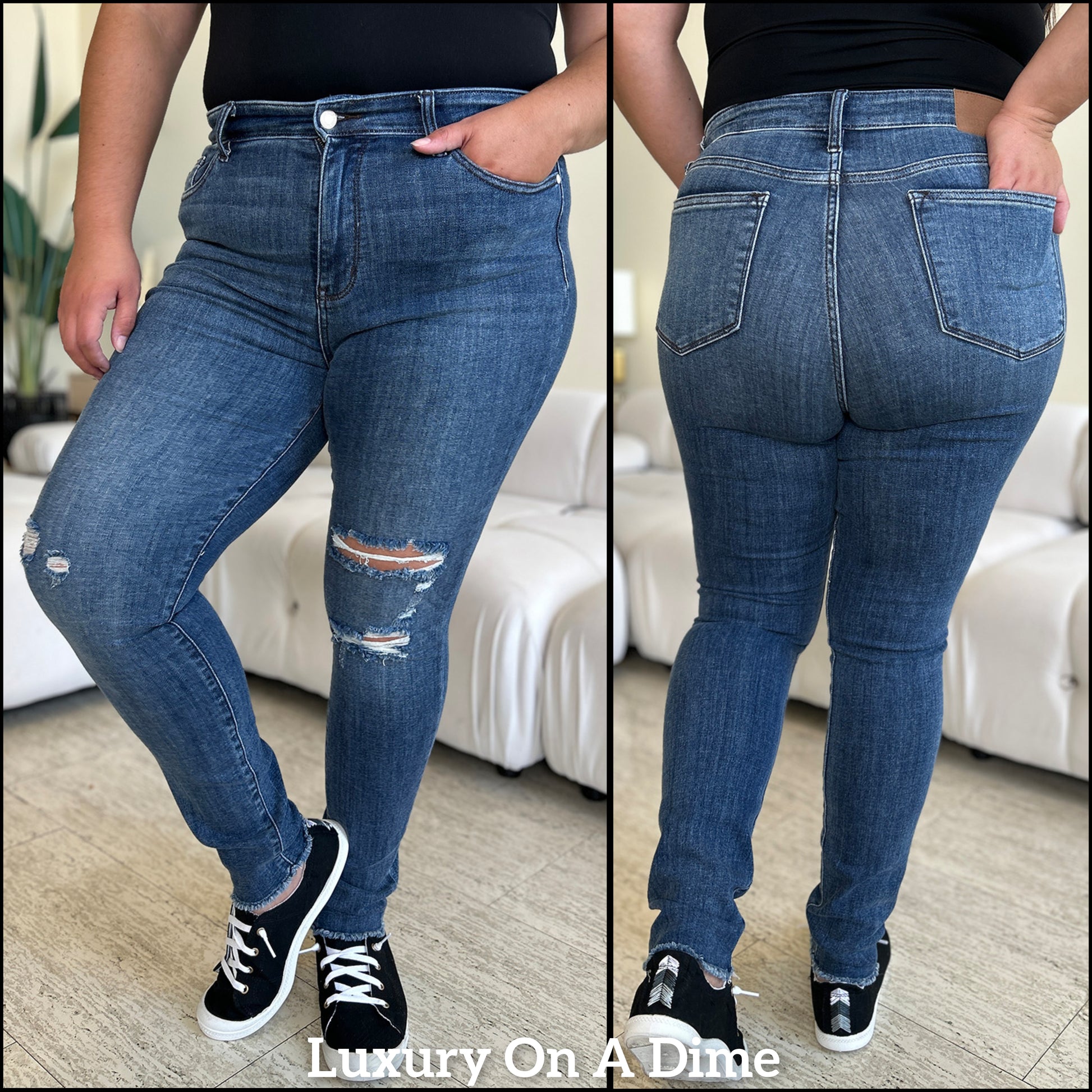 High Waist Skinny Stretch Distressed Slim Fit Torn Denim Raw Hem Jean Pants Judy Blue