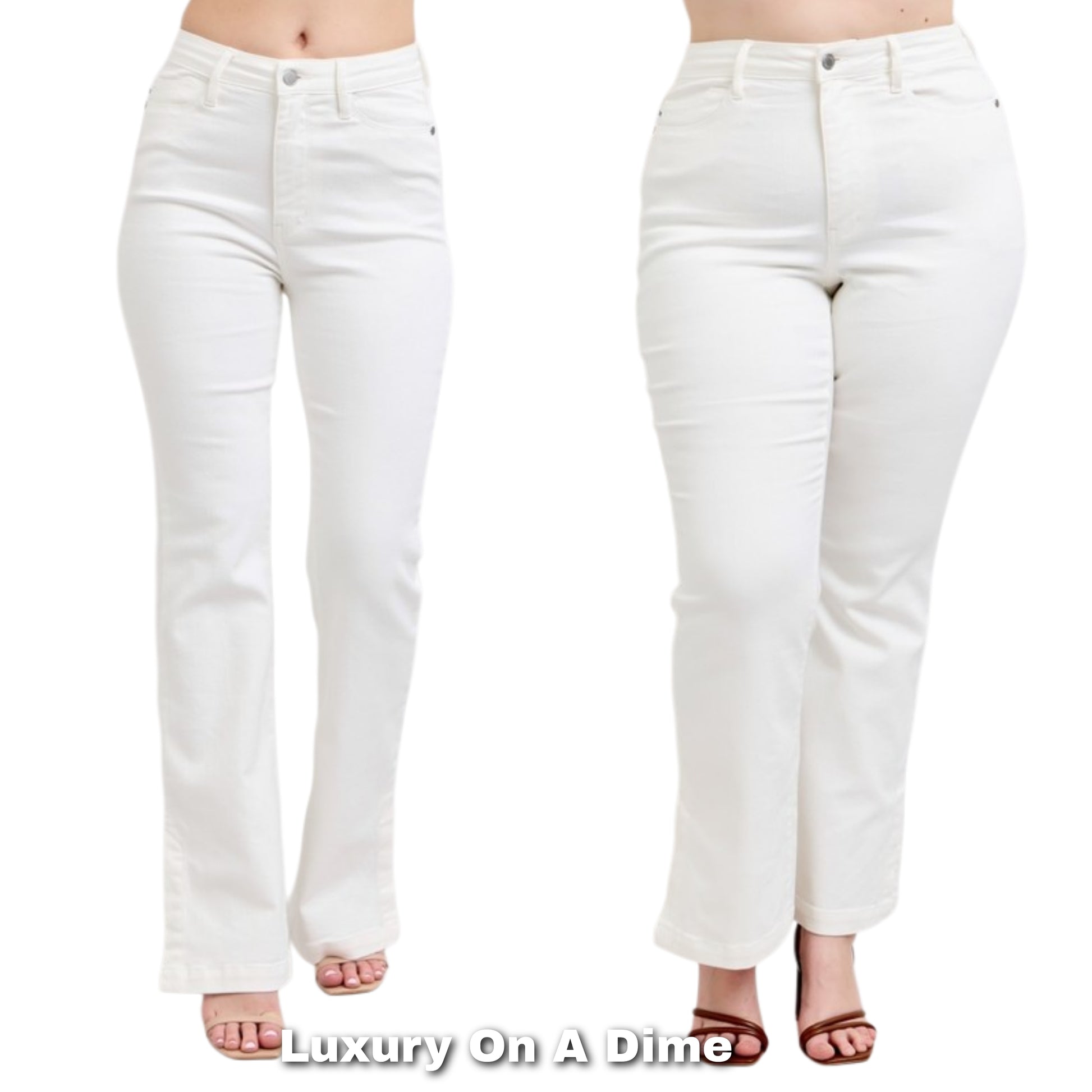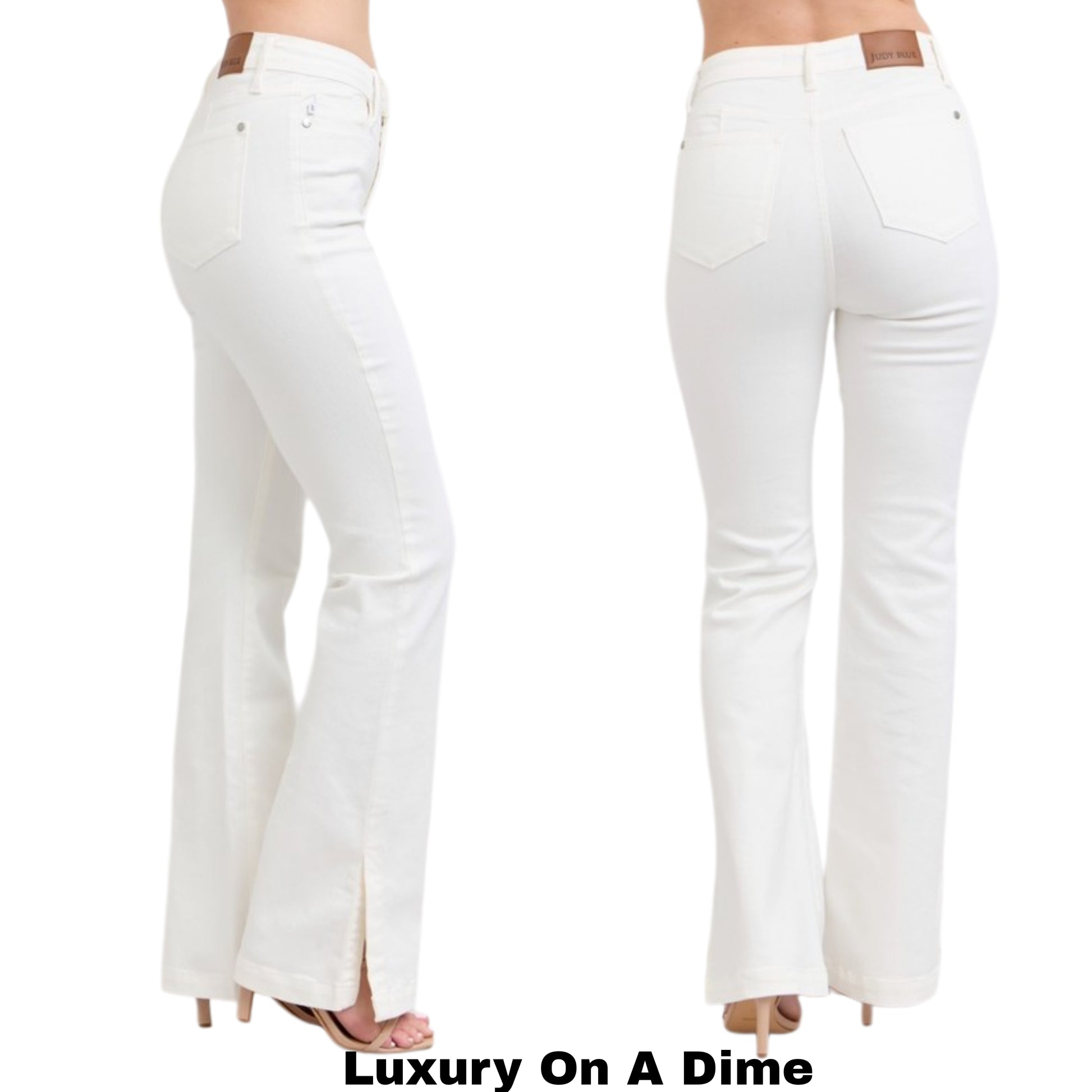 Judy Blue Tummy Control High-Rise Slit Hem Bootcut Slim Fit Jeans Denim Pants Plus Size Available