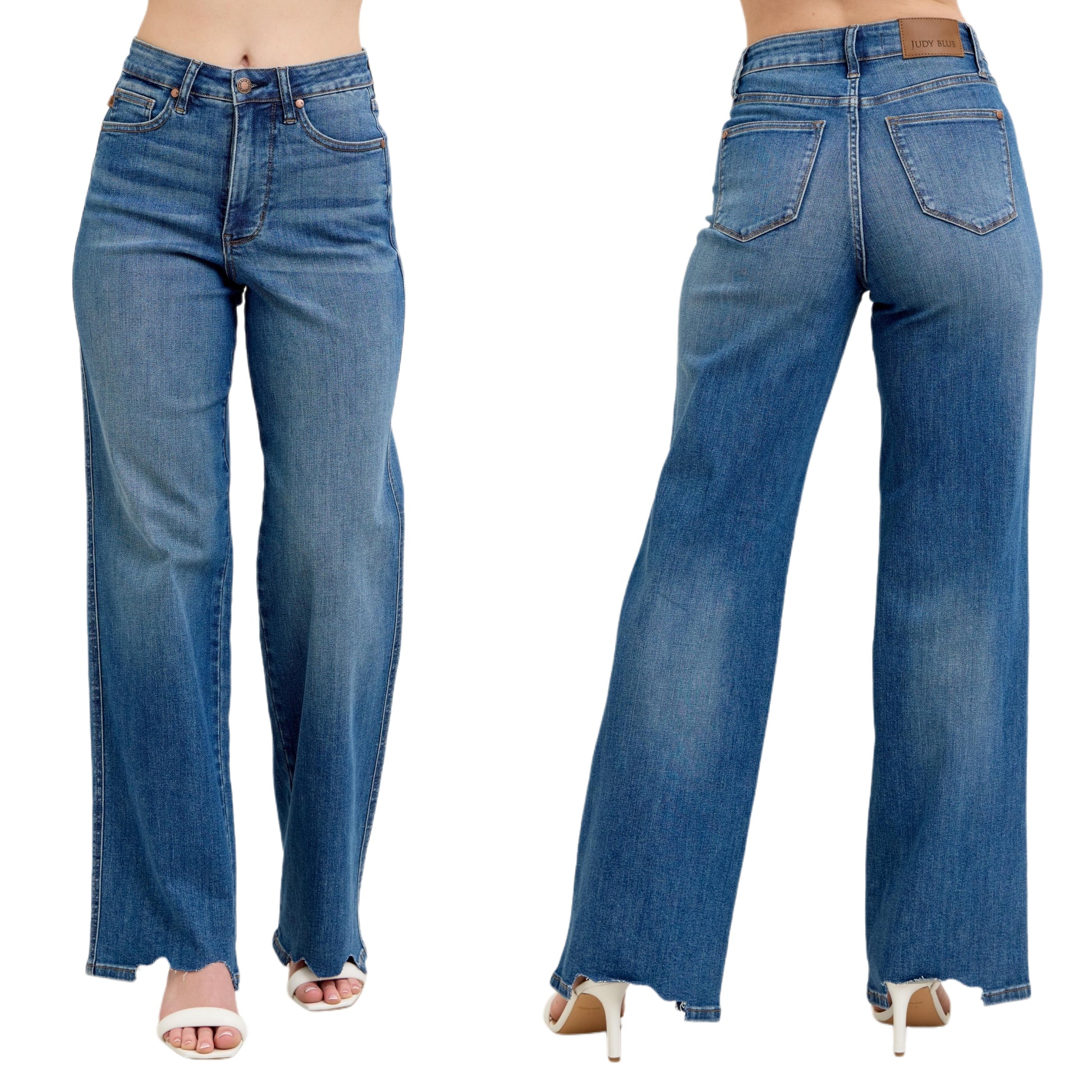 Judy Blue High-Rise Tummy Control Pants Baggy Wide Leg Cut Raw Hem Denim Jeans Plus Size Available