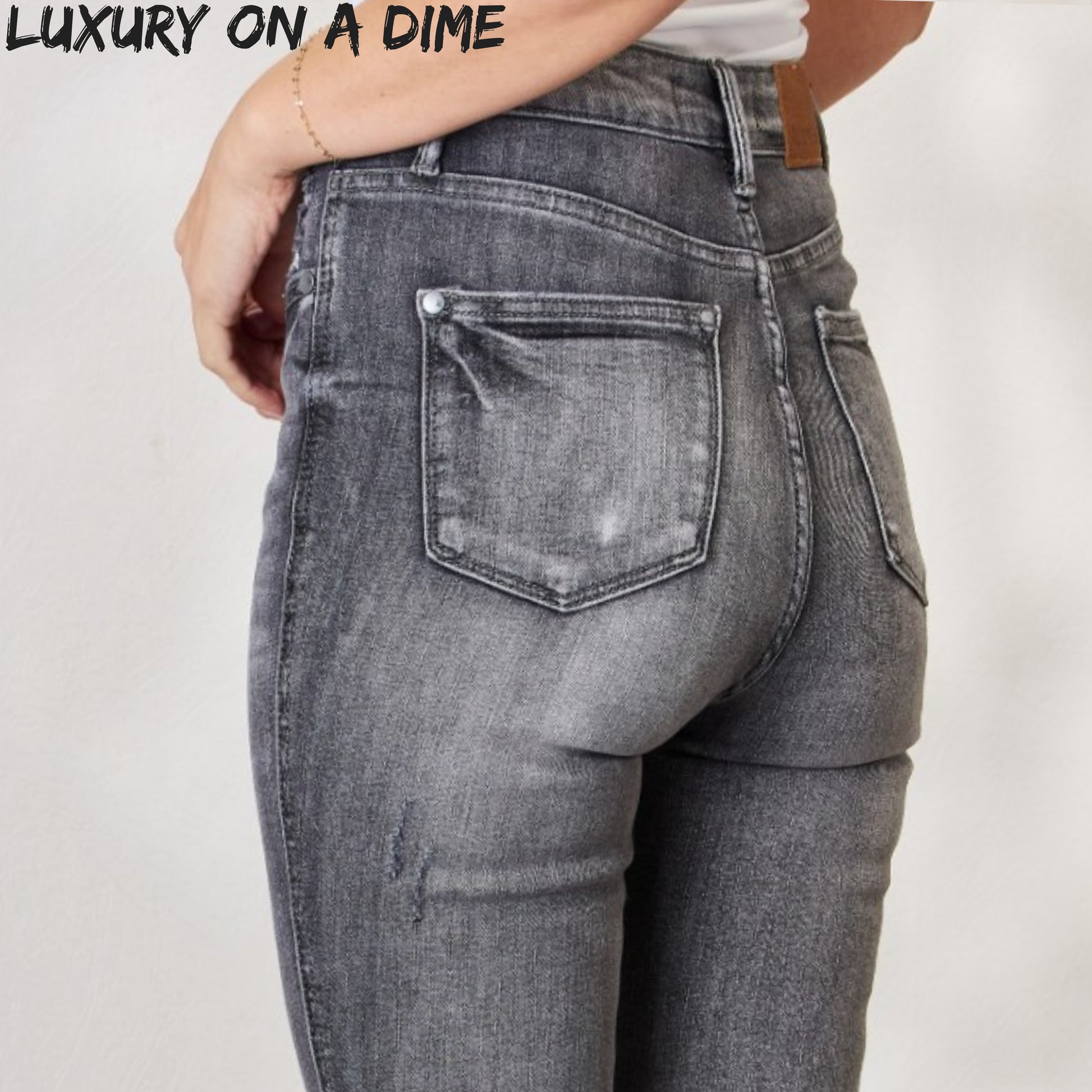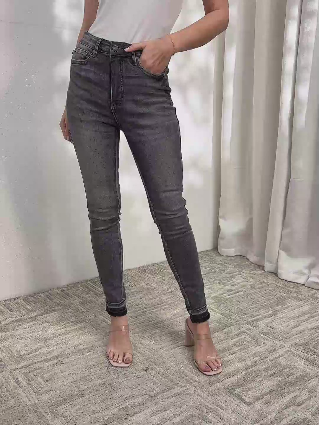 Tummy Control High Rise Skinny Slim Fit Denim Released Hem Jean Pants Grey